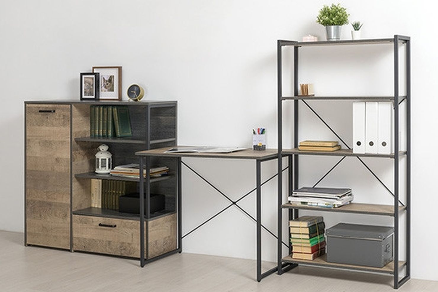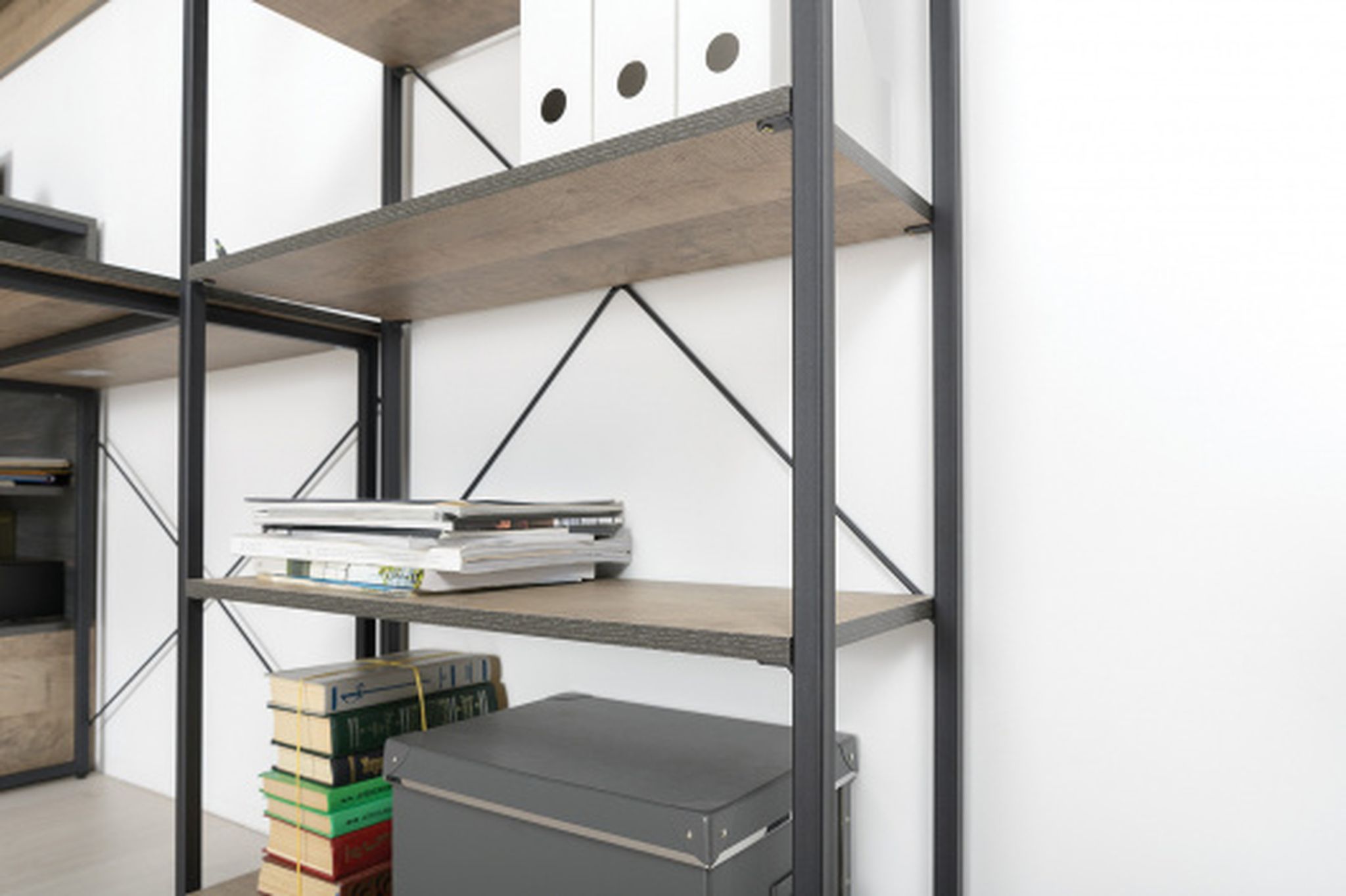 Стеллаж является надежным благодаря металлическим стойкам с регулируемыми опорами. Использование крестовых металлических стяжек вместо задней стенки делает конструкции лёгкими, воздушными и чрезвычайно прочными к боковым нагрузкам.