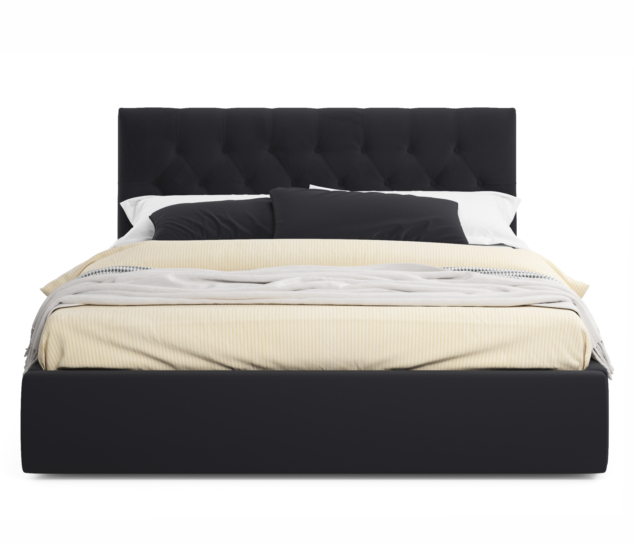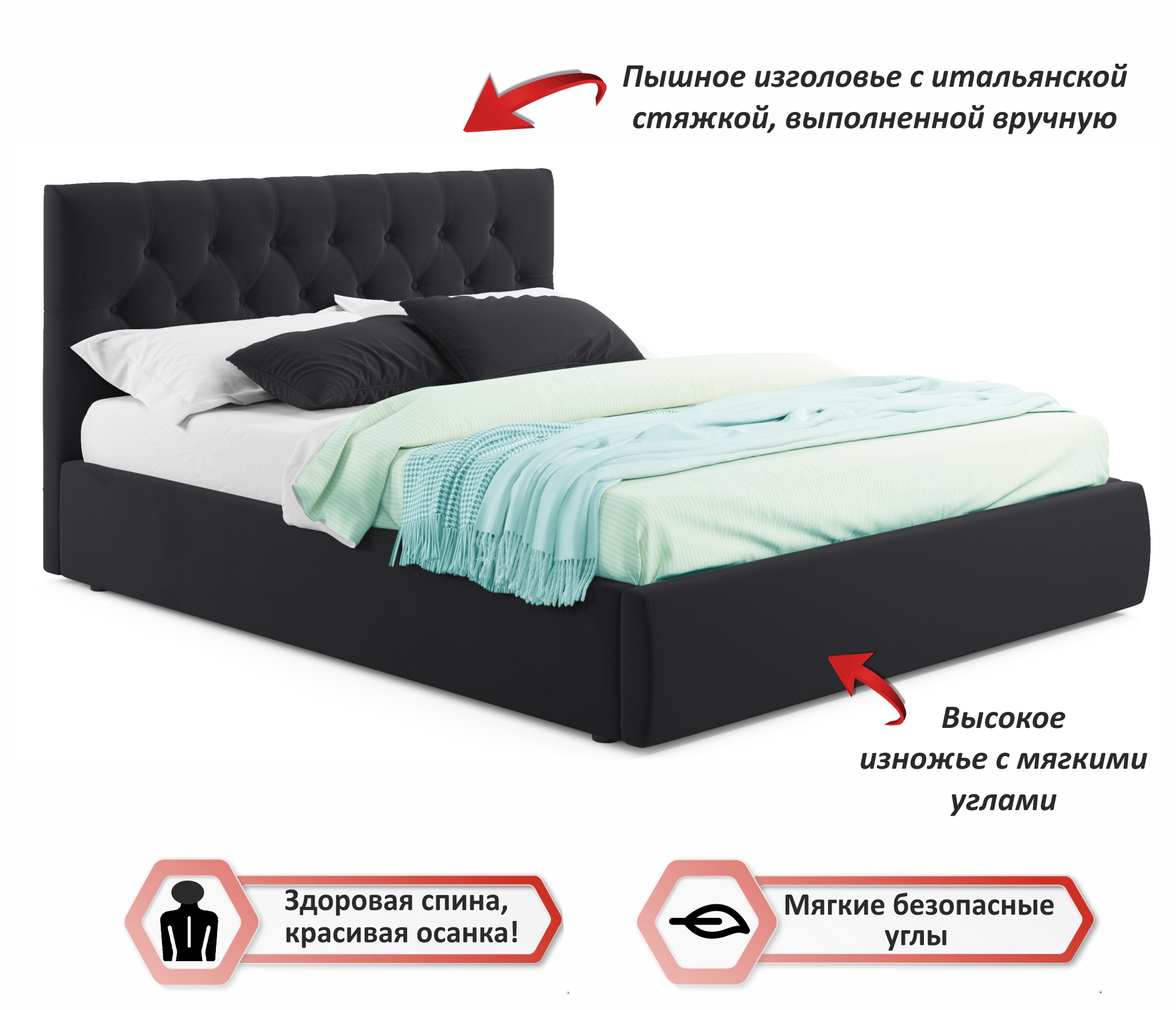 Яркий акцент 2-спальной подъемной кровати из ткани Verona сделан на мягкое высокую рельефную спинку (мягкий подголовник) в стиле «Chester Laurence» с классической «каретной стяжкой», изготовленную вручную мастерами с 20-летним стажем.