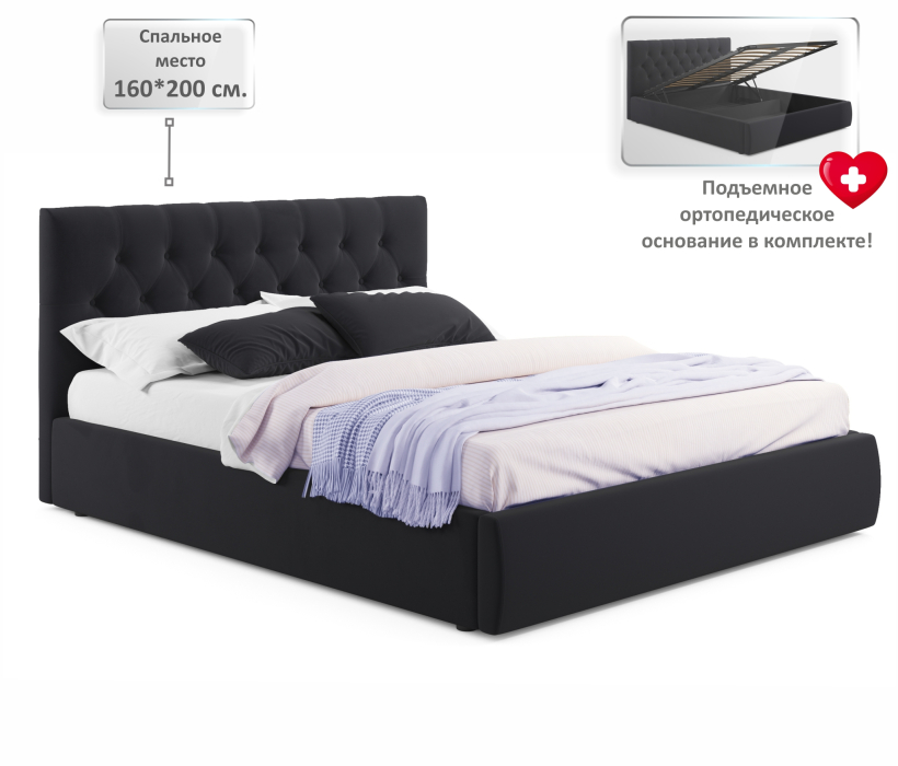 Отзывы о Столплит Мягкая кровать Verona 1600 с подъемным механизмом Велюр черный