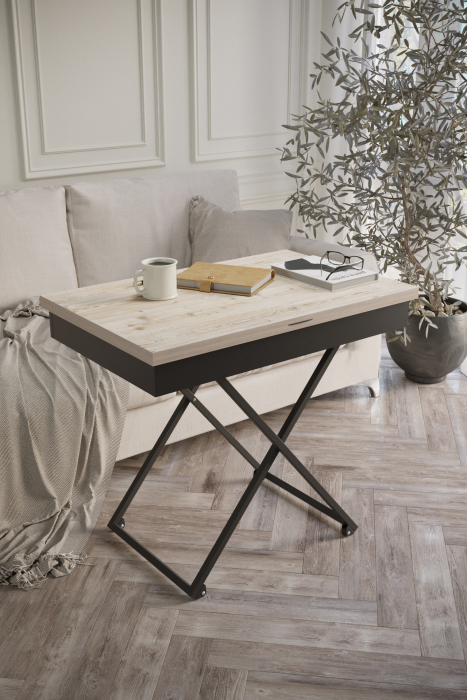 Стол универсальный трансформируемый "АНДРЭ Loft"- функциональный предмет мебели. Его можно поставить как на кухне, так и в гостиной. Подобный стол отлично впишется в интерьер помещения. Стол "АНДРЭ Loft"- грамотное решение для размещения большого количества вещей при экономии пространства в помещении, так как он имеет раскладную конструкцию. Это очень универсальный элемент, который выполняет разные функции. Стол можно использовать и для приёма пищи, и для отдыха за прочтением книги с чашечкой кофе, и даже вместо обычной тумбы. Особенностью такого предмета мебели является его способность трансформироваться: за считанные секунды можно увеличить столешницу или поменять высоту. Вы можете выбирать одно из четырех положений стола. Размеры столешницы в сложенном состоянии 850*550 мм, в разложенном-1100х850 мм. По высоте стол имеет два положения: 400 мм и 725 мм. Ножки стола выполнены из прочного металлического профиля, столешница- из ЛДСП марки Ламарти 16 мм. Стол на прорезиненных роликовых опорах, что без труда позволит перемещать его в помещении, при этом не царапая и не повреждая напольное покрытие.