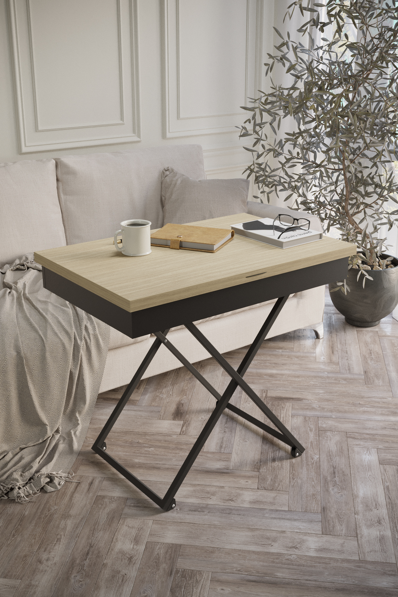 Стол универсальный трансформируемый "АНДРЭ Loft"- функциональный предмет мебели. Его можно поставить как на кухне, так и в гостиной. Подобный стол отлично впишется в интерьер помещения. Стол "АНДРЭ Loft"- грамотное решение для размещения большого количества вещей при экономии пространства в помещении, так как он имеет раскладную конструкцию. Это очень универсальный элемент, который выполняет разные функции. Стол можно использовать и для приёма пищи, и для отдыха за прочтением книги с чашечкой кофе, и даже вместо обычной тумбы. Особенностью такого предмета мебели является его способность трансформироваться: за считанные секунды можно увеличить столешницу или поменять высоту. Вы можете выбирать одно из четырех положений стола. Размеры столешницы в сложенном состоянии 850*550 мм, в разложенном-1100х850 мм. По высоте стол имеет два положения: 400 мм и 725 мм. Ножки стола выполнены из прочного металлического профиля, столешница- из ЛДСП марки Ламарти 16 мм. Стол на прорезиненных роликовых опорах, что без труда позволит перемещать его в помещении, при этом не царапая и не повреждая напольное покрытие.