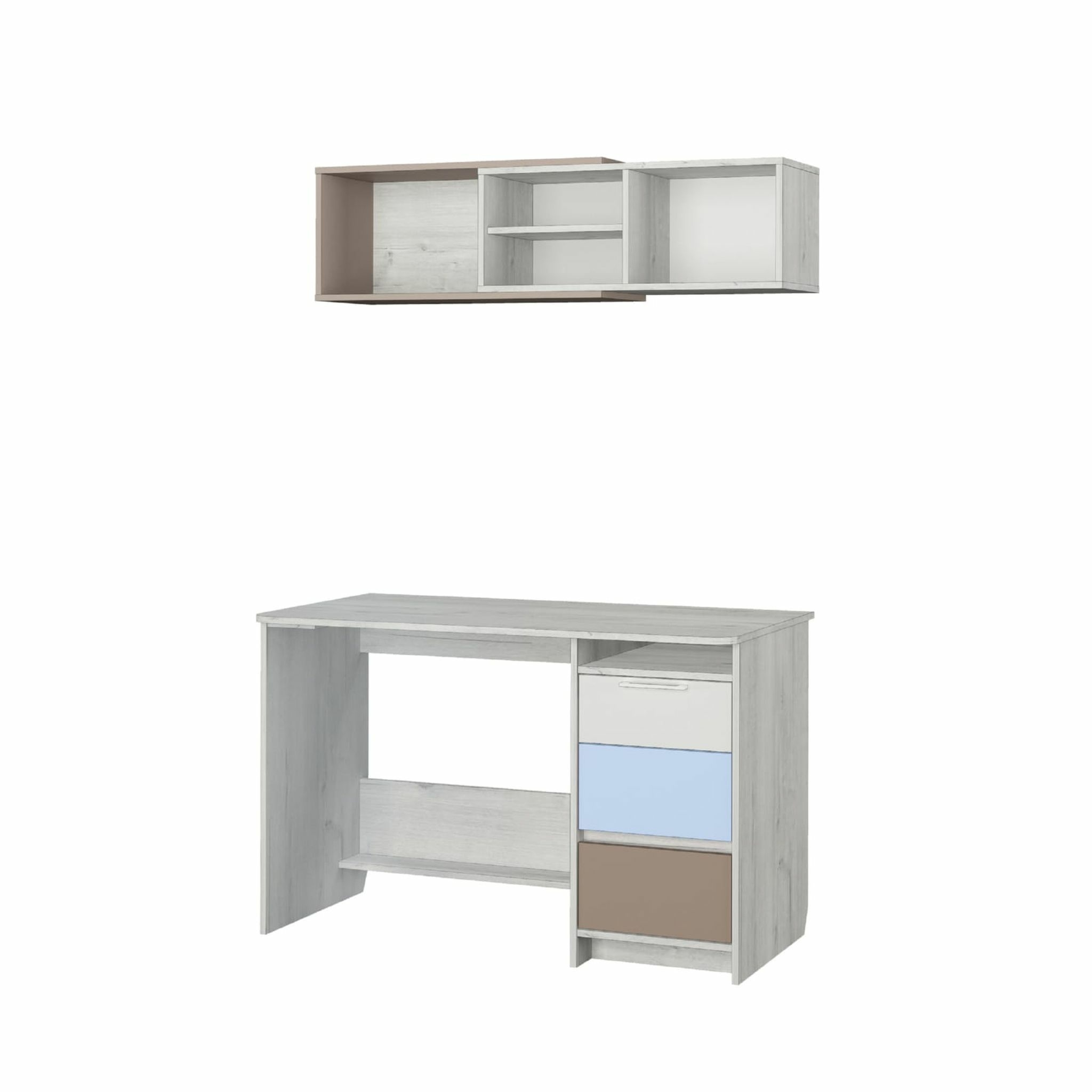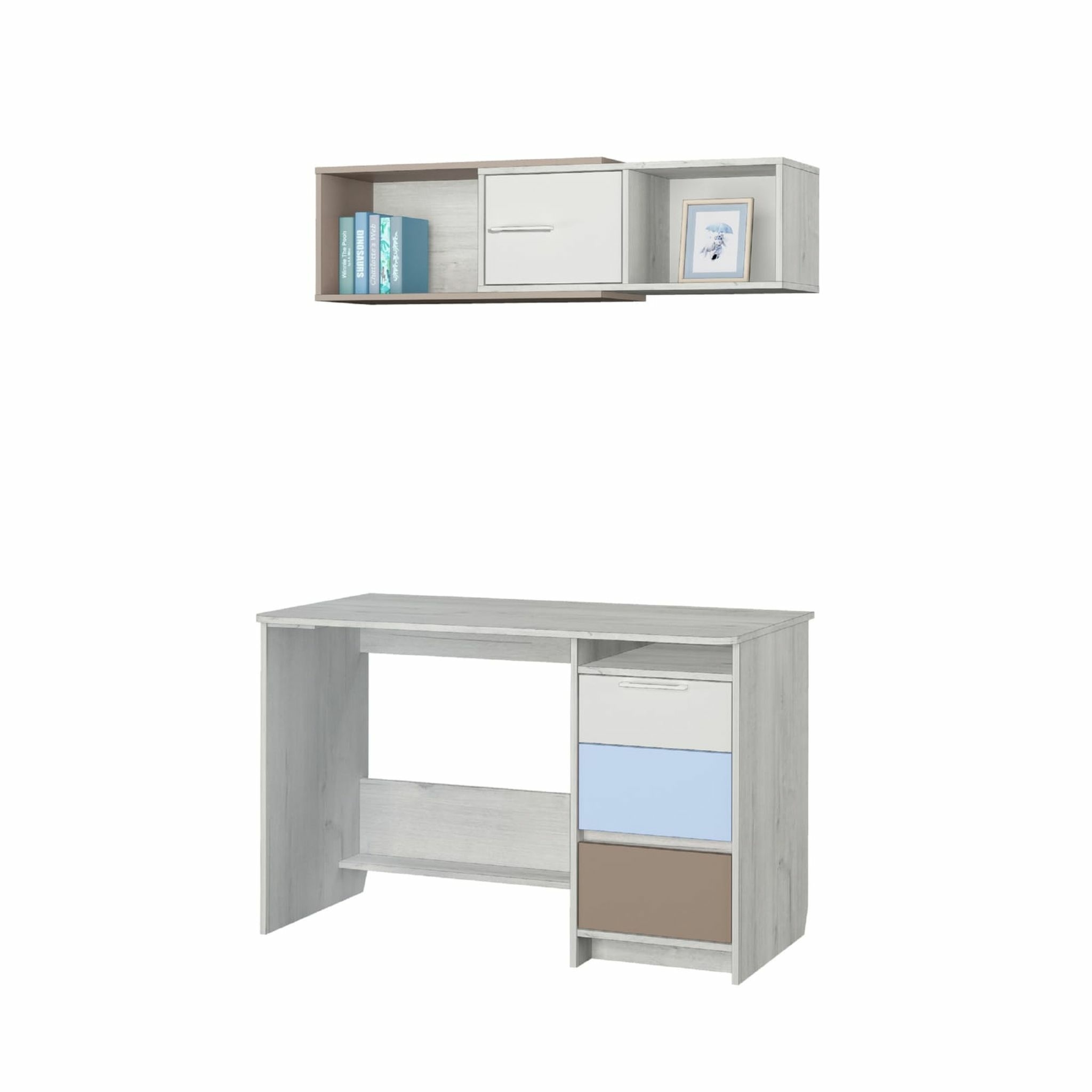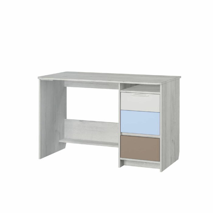 Стол письменный Зоя - это современный комфортный, функциональный стол для Вашего ребенка. Стол оборудован вместительной столешницей, открытой полкой и тремя выдвижными ящиками для хранения различных письменных принадлежностей. Также стол имеет специальную подставку под ноги для удобного и правильного сидения ребенка. Изготовлен из экологически чистых материалов.