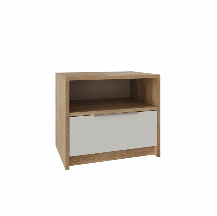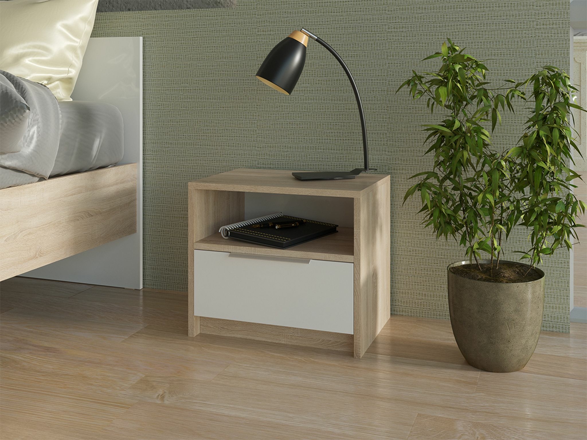 Тумба прикроватная Норд - это современная, удобная прикроватная тумба. Она будет прекрасно смотреться в любом по дизайну помещении. Прикроватная тумба - это незаменимый атрибут любой кровати, с ней наша спальная комната становится уютнее и комфортнее. Данная тумба оборудована открытой нишей и одним выдвижным ящиком для необходимых вещей. Изготовлена из экологически чистых материалов.
