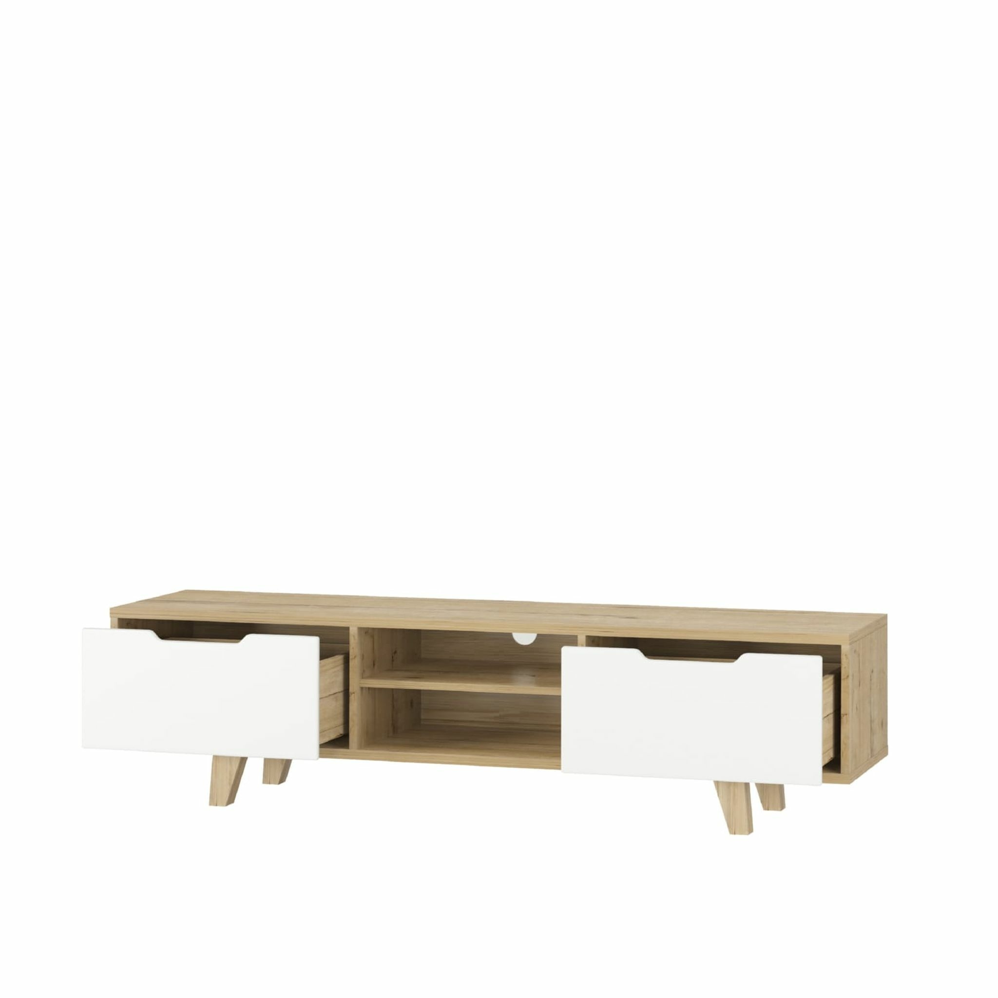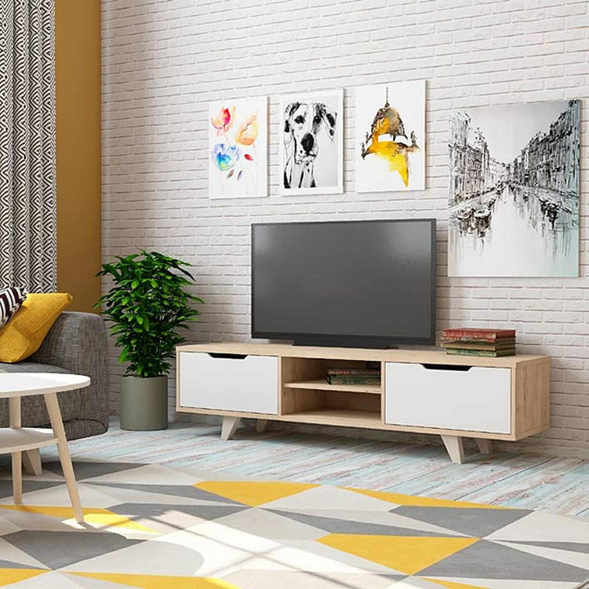 Тумба ТВ Аскис именно такая, как я искала. Она приземистая, стоит на изящных ножках, да и в целом смотрится тумба изящно и по современному. И хоть тумба невысокая, но она очень функциональная. На ней легко уместился наш большой телевизор. А в нишах и ящиках без труда поместилась вся остальная аппаратура. И качество этой тумбы нам с мужем понравилось, мы довольны покупкой.