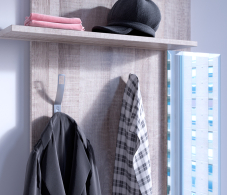 Корпус и фасады выполнены из ЛДСП в цвете «дуб аутентик» и «белый».