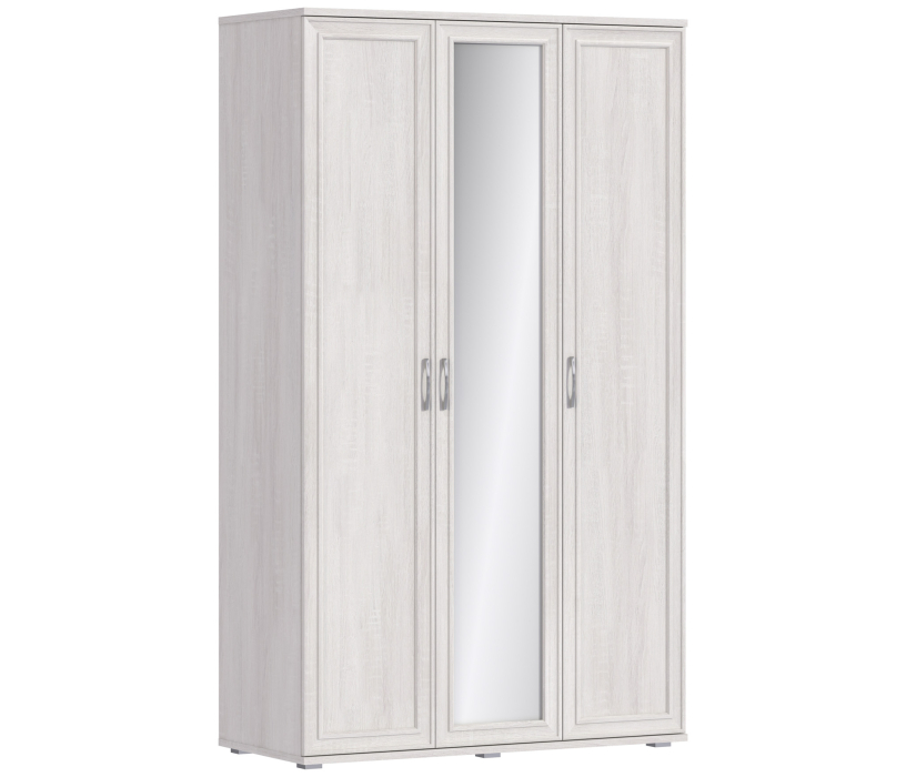 Размеры шкафа СБ-2390 нельзя назвать компактными – ширина 132 см, высота 224 см и глубина 57 см. За одной зеркальной и одной глухой дверцей располагается вместительное отделение со штангой для одежды и верхней полкой. За второй глухой дверцей - отделение с пятью полками.Произведен шкаф из современных материалов - КДСП и МДФ.Классическое исполнение, светлый оттенок оформления «Дуб Сонома белый», подобранная фурнитура и качественные крепёжные механизмы говорят о достойном качестве трехдверного шкафа Флоренция СБ-2390.