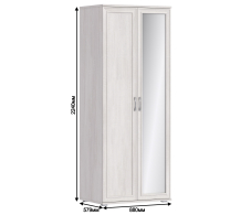 Размеры шкафа СБ-2391 – ширина 88 см, высота 224 см и глубина 57 см. За одной зеркальной и одной глухой дверцей располагается вместительное отделение со штангой для одежды и верхней полкой. Произведен шкаф из современных материалов - КДСП и МДФ.Классическое исполнение, светлый оттенок оформления «Дуб Сонома белый», подобранная фурнитура и качественные крепёжные механизмы говорят о достойном качестве двухдверного шкафа Флоренция СБ-2391.
