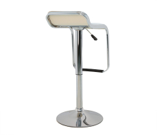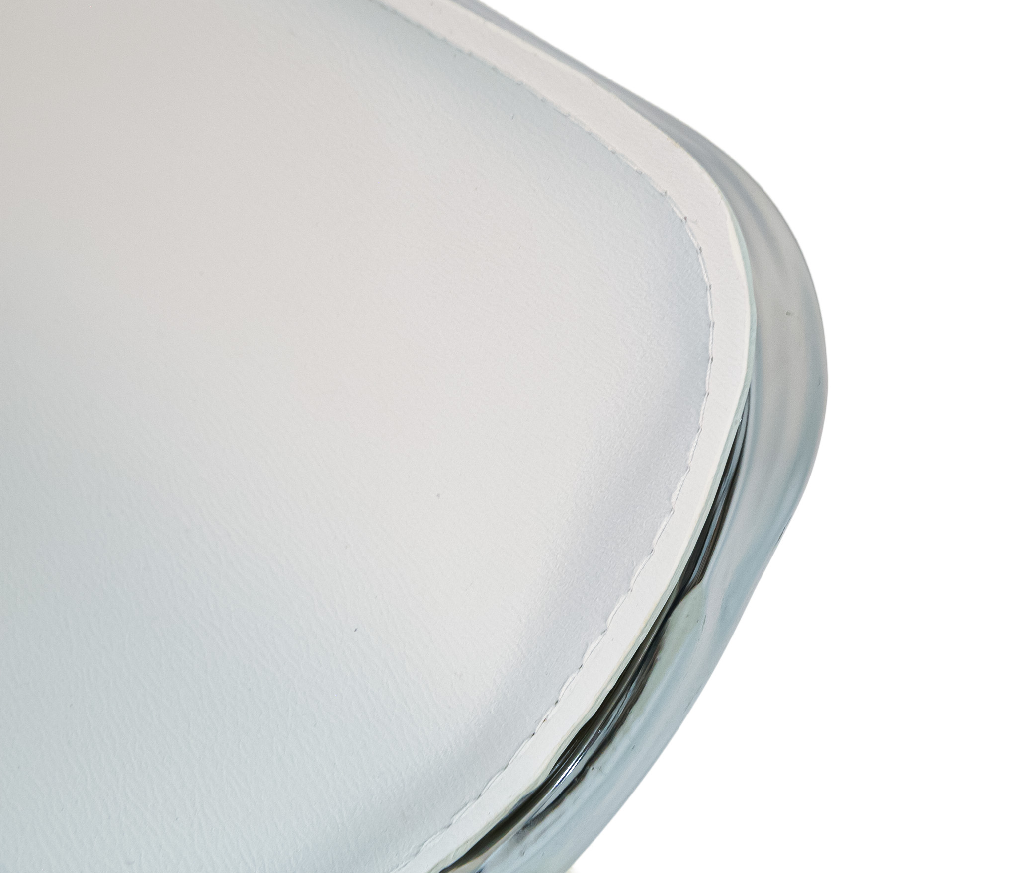 Очень блестящий. Давно привыкла к высоким барным стульям без спинок, поэтому обновила на такую модель. А вот перекладина для ног очень комфортная. Спасибо магазину