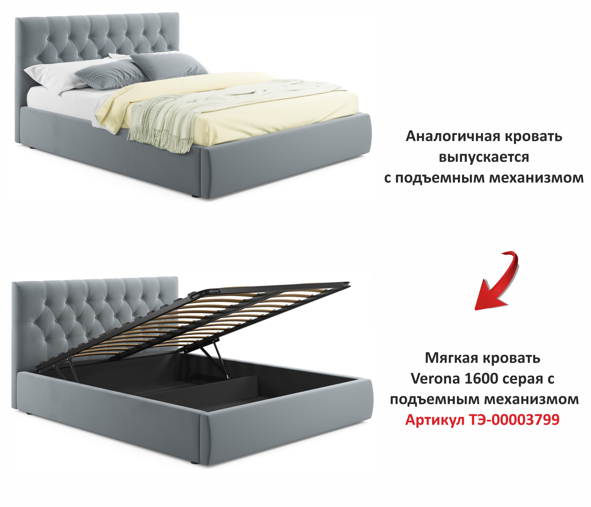 Аналогичная кровать выпускается с подъемным механизмом.