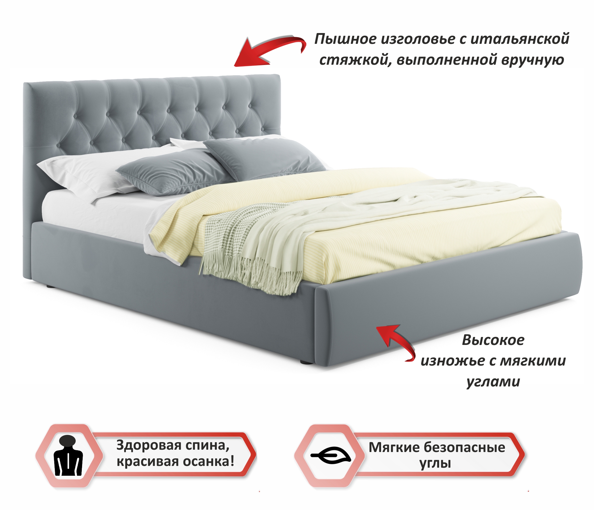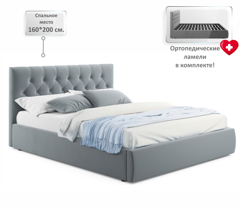 Купить мягкую двуспальную кровать 160х200 можно с ортопедическим матрасом. Цена указана без стоимости матраса.