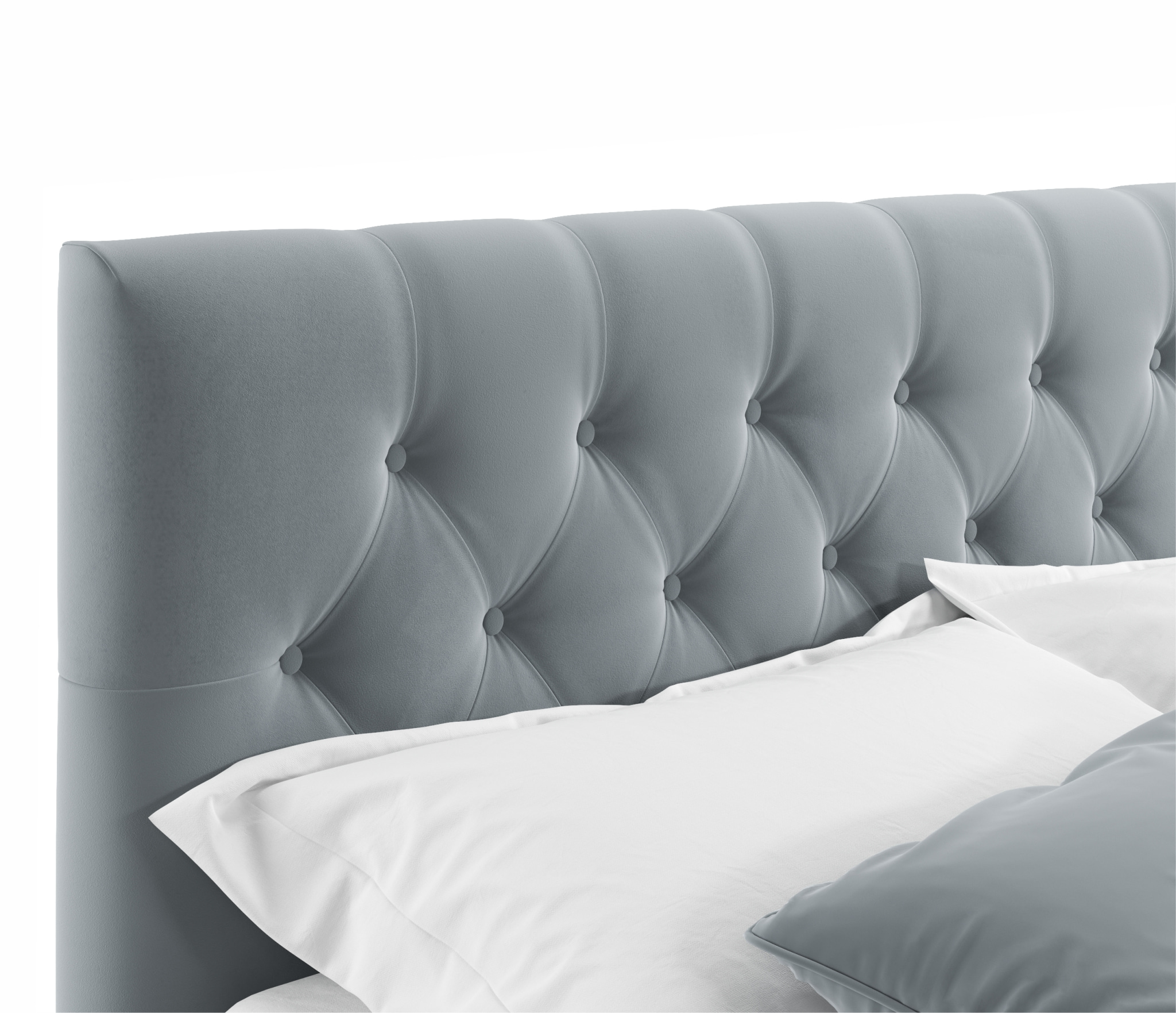 Яркий акцент 2-спальной мягкой кровати из ткани Verona сделан на мягкое высокую рельефную спинку (мягкий подголовник) в стиле «Chester Laurence» с классической «каретной стяжкой», изготовленную вручную мастерами с 20-летним стажем.