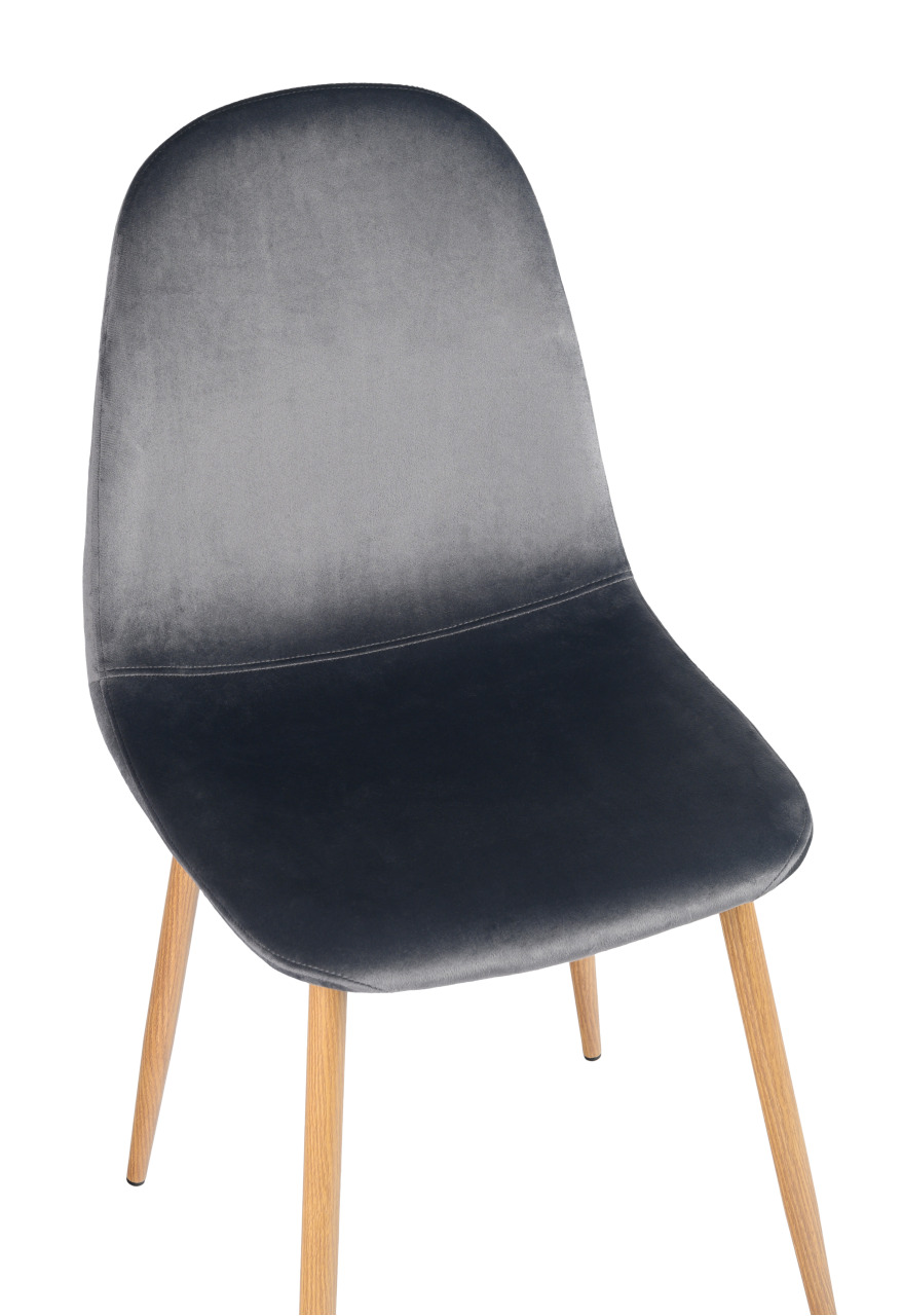 Стул обеденный в мягкой обивке велюр. Сидение и спинка выполнены из многослойной фанеры. Каркас стальной с принтом под дерево