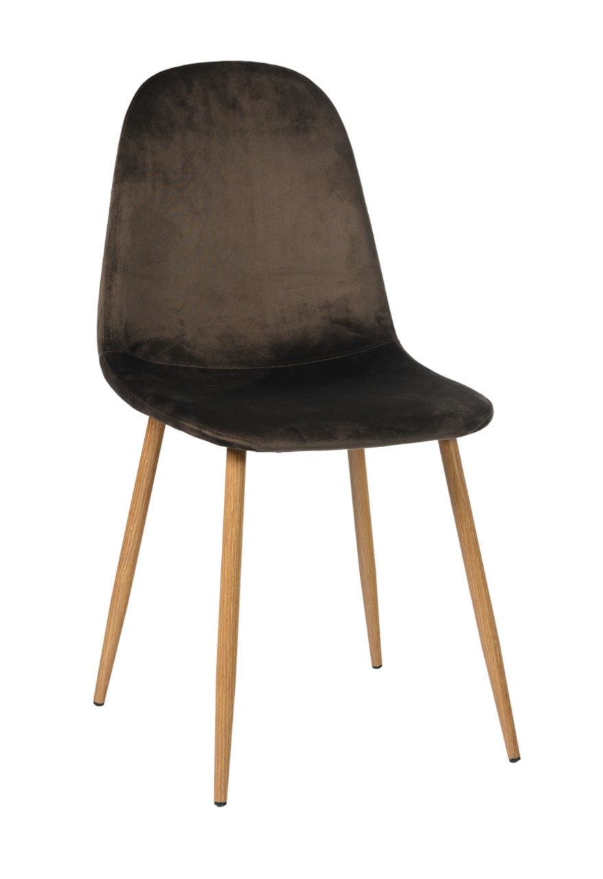 Стул обеденный в мягкой обивке велюр. Сидение и спинка выполнены из многослойной фанеры. Каркас стальной с принтом под дерево