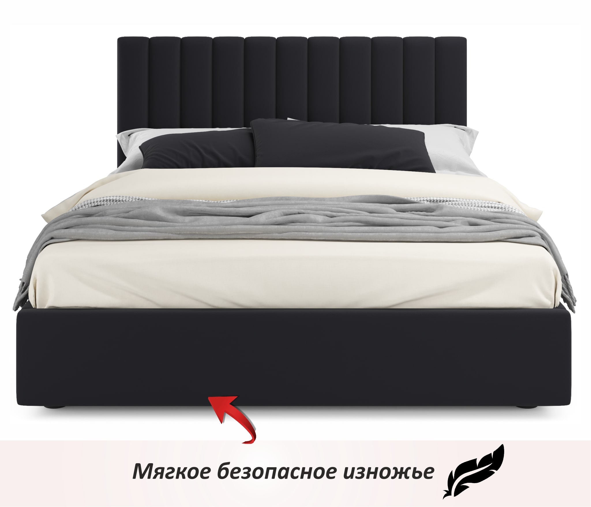 • Подкроватное пространство закрывается противопыльным матерчатым коробом из плотного спанбонда. Матерчатый короб фиксируется в подматрасном пространстве с помощью системы ленты-липучки "HOOK&LOOP".