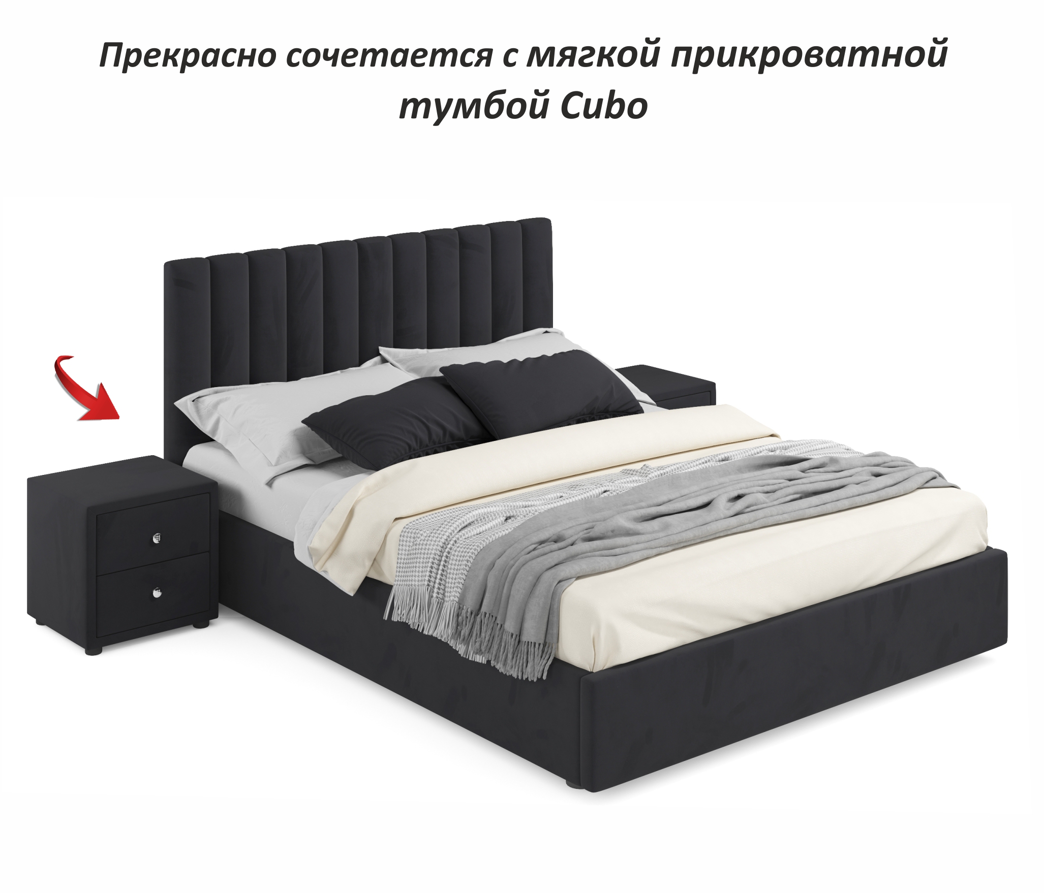 Мягкая кровать Olivia 1600 с подъемным механизмом (Велюр черный) Код I0000300722