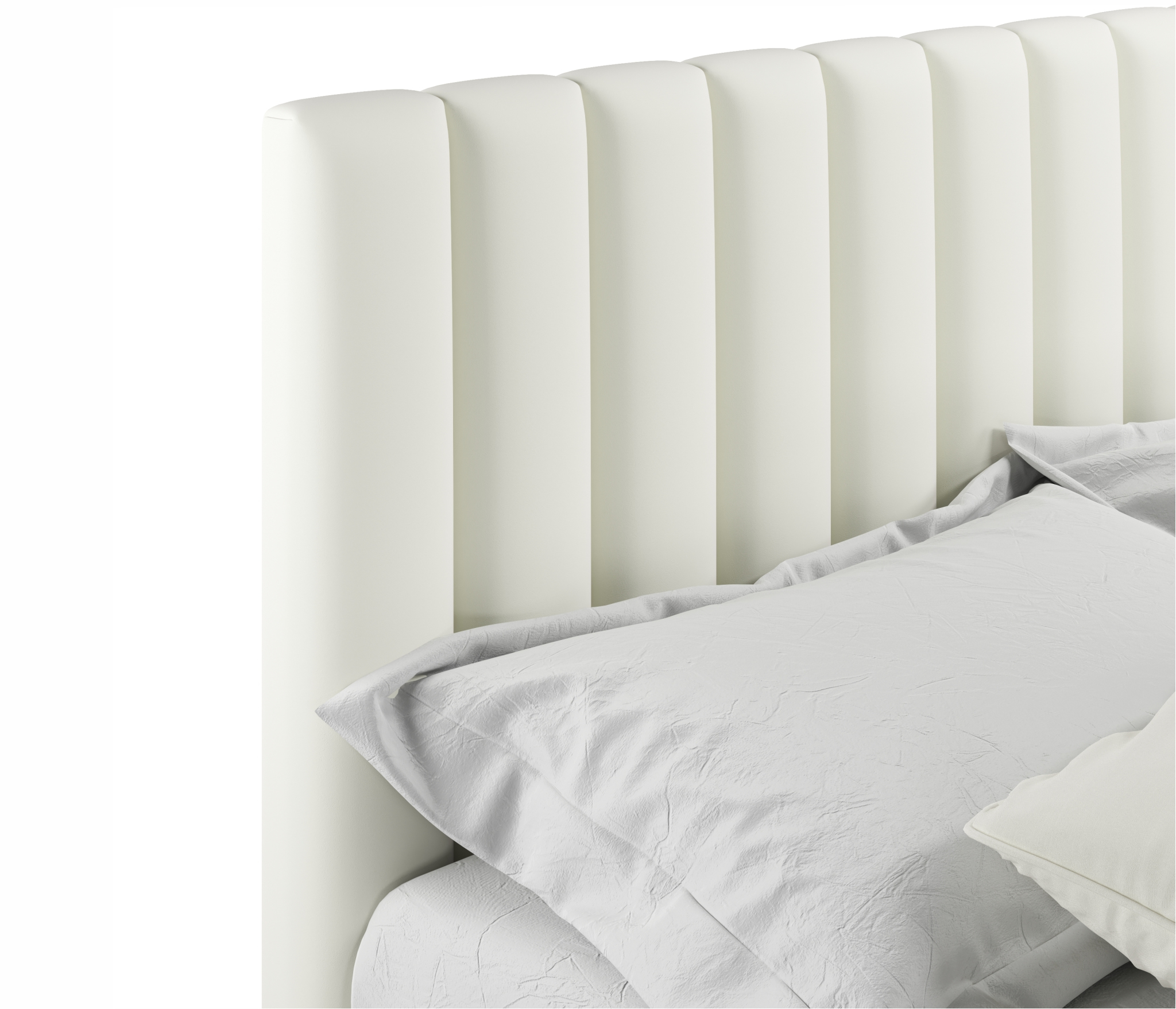 Изюминка двуспальной кровати из ткани Olivia - мягкое изголовье в виде объемных прямоугольных “батонов”. Кровать с высоким изголовьем более пухлая и мягкая, а соответственно, более удобная не только для сна, но и для приятного времяпрепровождения (просмотра телепередачи, чтения книги, завтрака и даже, работы)