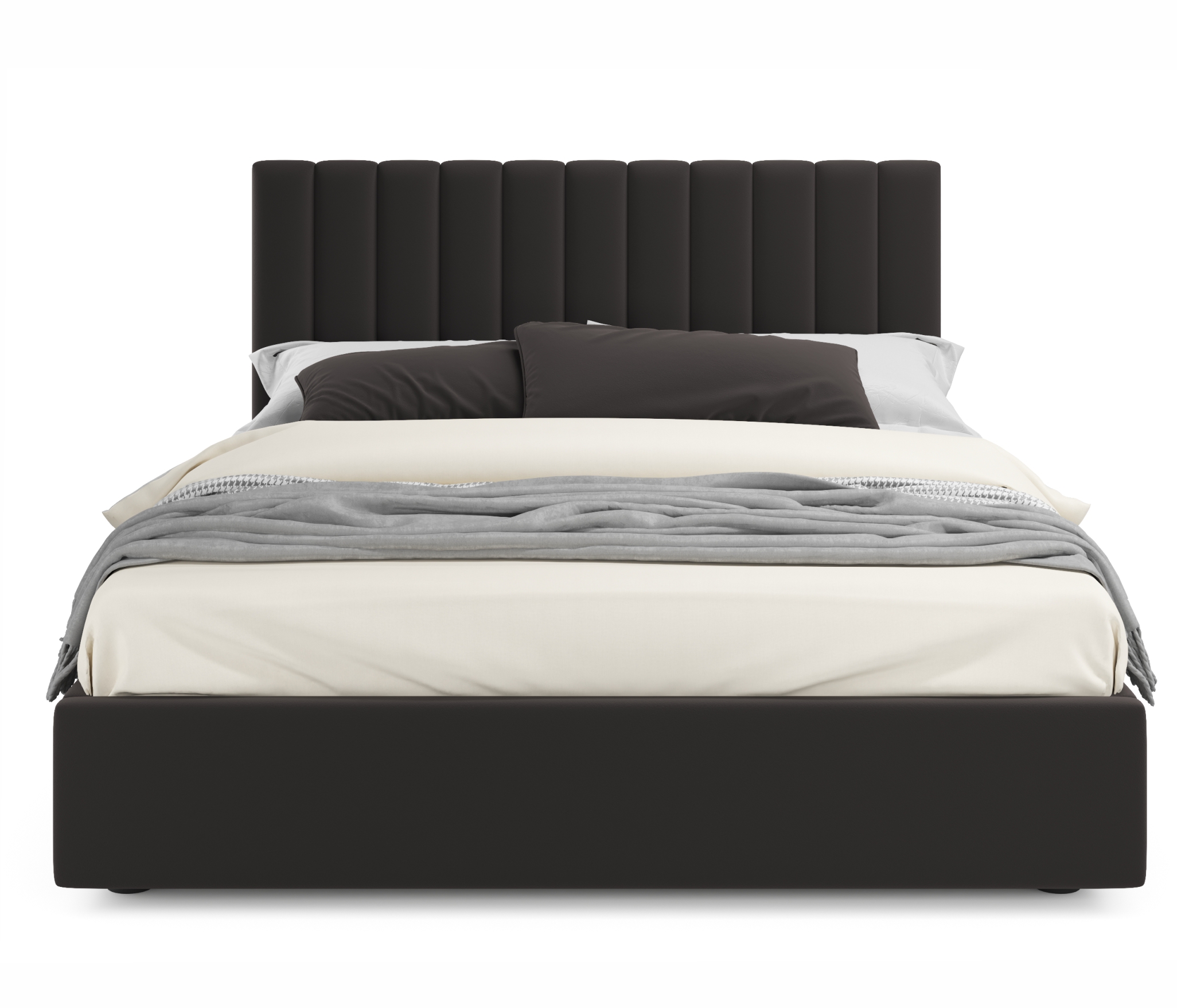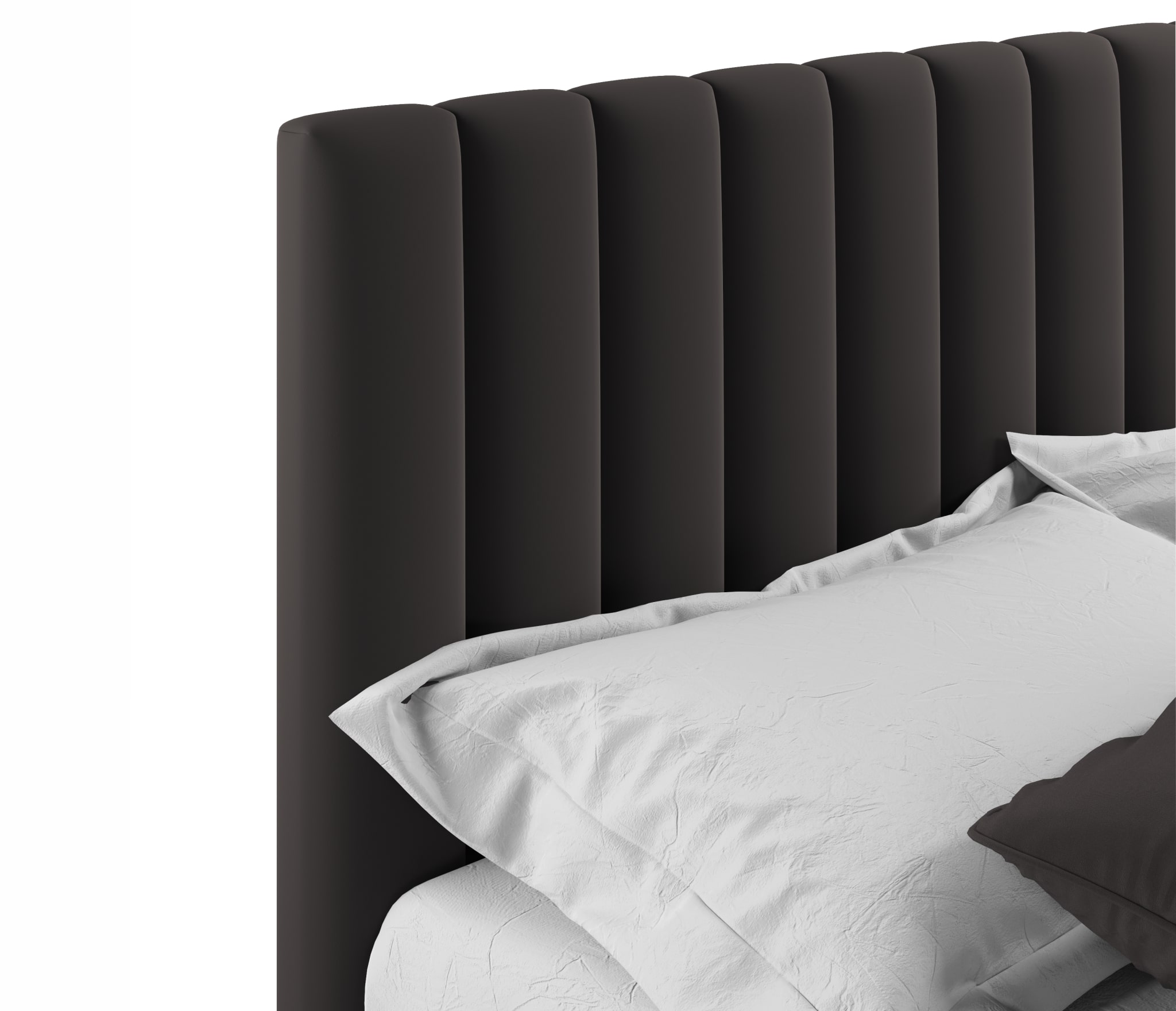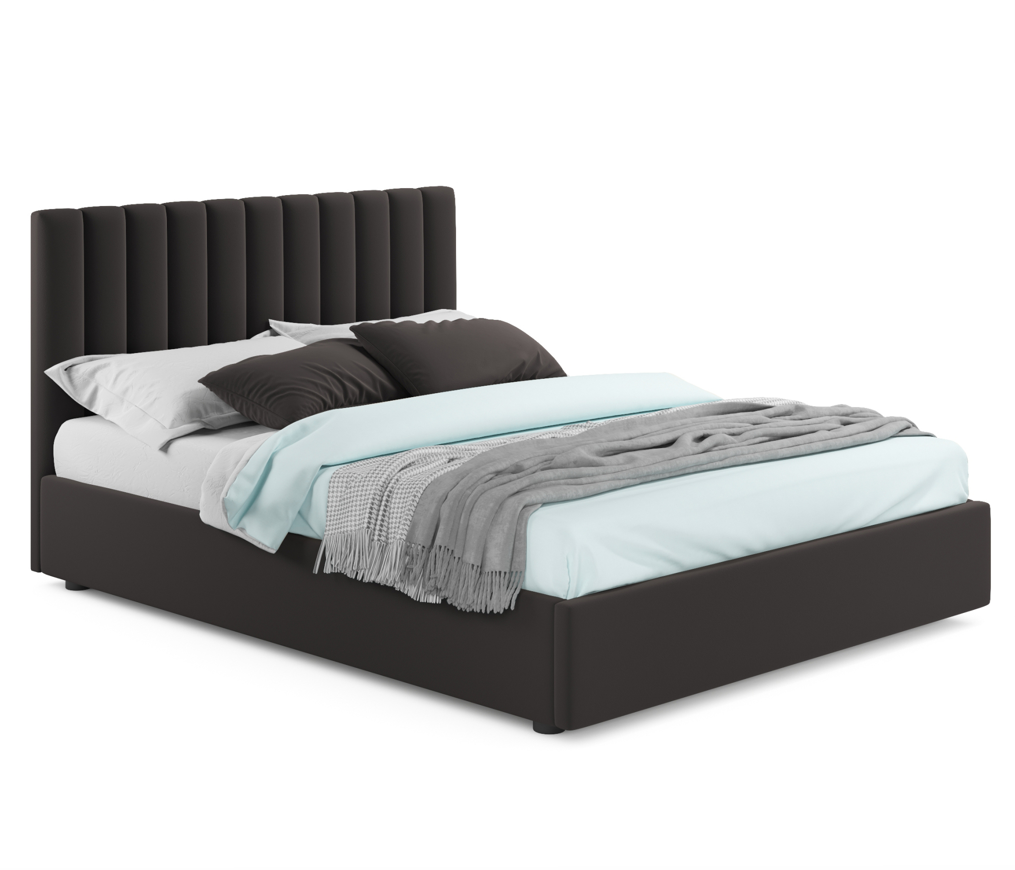 Изюминка двуспальной кровати из ткани Olivia - мягкое изголовье в виде объемных прямоугольных “батонов”. Кровать с высоким изголовьем более пухлая и мягкая, а соответственно, более удобная не только для сна, но и для приятного времяпрепровождения (просмотра телепередачи, чтения книги, завтрака и даже, работы)