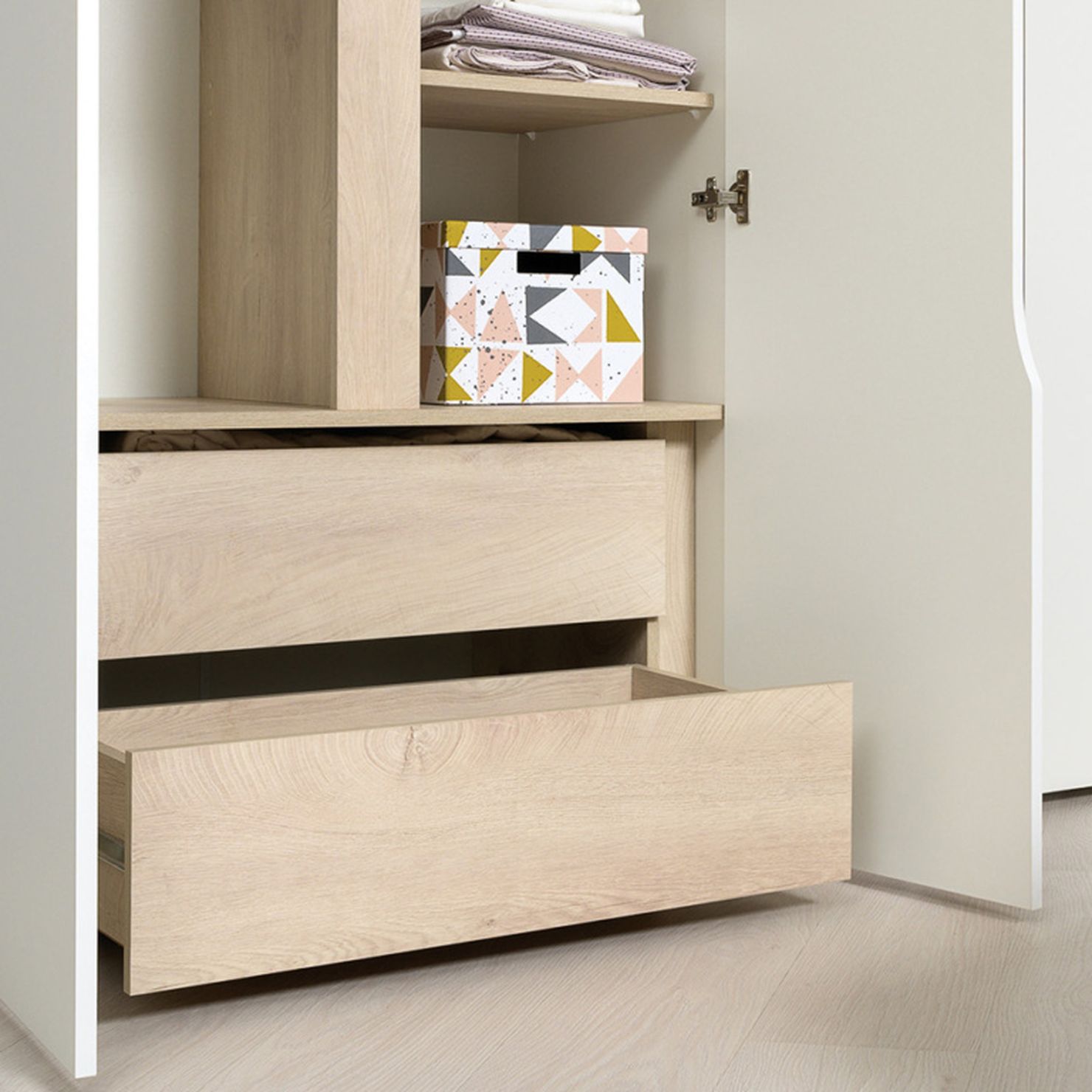 имеются два выдвижных ящика для одежды. С внутренней
