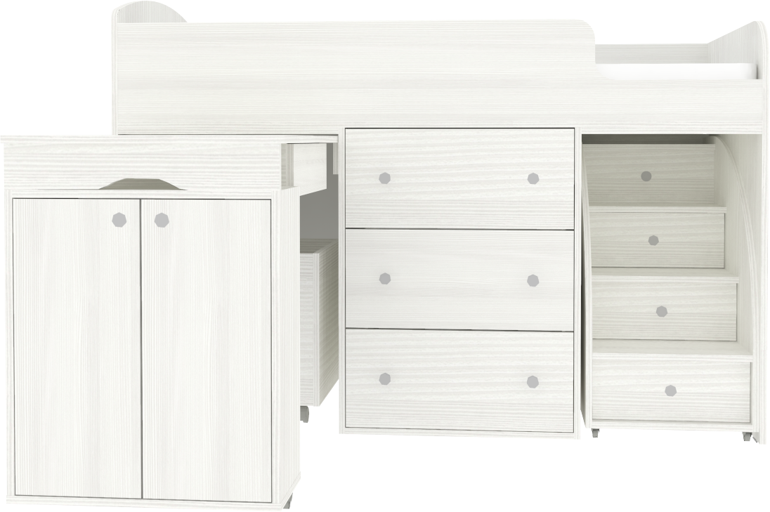 - Экономичность – сокращение времени по подбору и поиску, а так же средств на необходимом наборе мебели для ребенка (приобретая поотдельности кроватку, комод для вещей, столик для занятий, полки для пособий и сундук для многочисленных игрушек, то весь набор обойдется существенно дороже.). Фабрика проявляет заботу о здоровье детей, и поэтому использует в производстве только экологически чистые материалы. Экологичная мебель не вызывает аллергии и не вредит здоровью. Кроме того, мебель от этого производителя спроектирована с учетом, что ей будут пользоваться дети, поэтому при ее создании были приняты все меры для уменьшения ее травмоопасности. У мебели для малышей нет острых углов, о которые ребенок может больно удариться. Кровати-чердаки обязательно оборудованы ограничителями, которые не дадут ребенку случайно упасть с кровати. разумеется, особое внимание компания уделяет прочности и надежности производимой мебели. Эта компактная и многофункциональная детская кровать станет великолепным решением для небольшой детской комнаты. Матрас для кровати вы можете приобрести отдельно в разделе детских матрасов. Так же мы предлагаем ниже в разделе Аксессуары наиболее оптимальные варианты для данной кровати.
