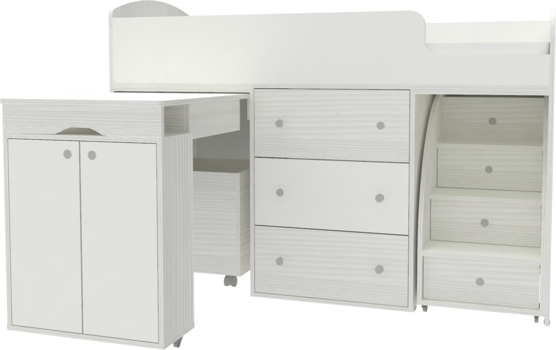 - Экономичность – сокращение времени по подбору и поиску, а так же средств на необходимом наборе мебели для ребенка (приобретая поотдельности кроватку, комод для вещей, столик для занятий, полки для пособий и сундук для многочисленных игрушек, то весь набор обойдется существенно дороже.). Фабрика проявляет заботу о здоровье детей, и поэтому использует в производстве только экологически чистые материалы. Экологичная мебель не вызывает аллергии и не вредит здоровью. Кроме того, мебель от этого производителя спроектирована с учетом, что ей будут пользоваться дети, поэтому при ее создании были приняты все меры для уменьшения ее травмоопасности. У мебели для малышей нет острых углов, о которые ребенок может больно удариться. Кровати-чердаки обязательно оборудованы ограничителями, которые не дадут ребенку случайно упасть с кровати. разумеется, особое внимание компания уделяет прочности и надежности производимой мебели. Эта компактная и многофункциональная детская кровать станет великолепным решением для небольшой детской комнаты. Матрас для кровати вы можете приобрести отдельно в разделе детских матрасов. Так же мы предлагаем ниже в разделе Аксессуары наиболее оптимальные варианты для данной кровати.