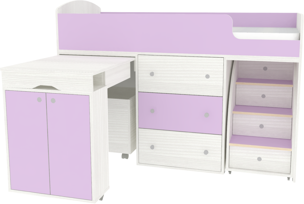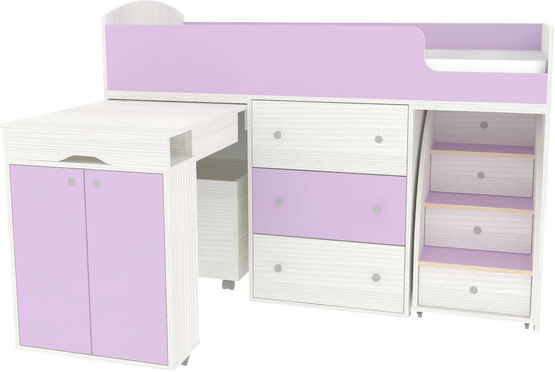 - Экономичность – сокращение времени по подбору и поиску, а так же средств на необходимом наборе мебели для ребенка (приобретая поотдельности кроватку, комод для вещей, столик для занятий, полки для пособий и сундук для многочисленных игрушек, то весь набор обойдется существенно дороже.). Фабрика проявляет заботу о здоровье детей, и поэтому использует в производстве только экологически чистые материалы. Экологичная мебель не вызывает аллергии и не вредит здоровью. Кроме того, мебель от этого производителя спроектирована с учетом, что ей будут пользоваться дети, поэтому при ее создании были приняты все меры для уменьшения ее травмоопасности. У мебели для малышей нет острых углов, о которые ребенок может больно удариться. Кровати-чердаки обязательно оборудованы ограничителями, которые не дадут ребенку случайно упасть с кровати. разумеется, особое внимание компания уделяет прочности и надежности производимой мебели. Эта компактная и многофункциональная детская кровать станет великолепным решением для небольшой детской комнаты. Матрас для кровати вы можете приобрести отдельно в разделе детских матрасов. Так же мы предлагаем ниже в разделе Аксессуары наиболее оптимальные варианты для данной кровати.