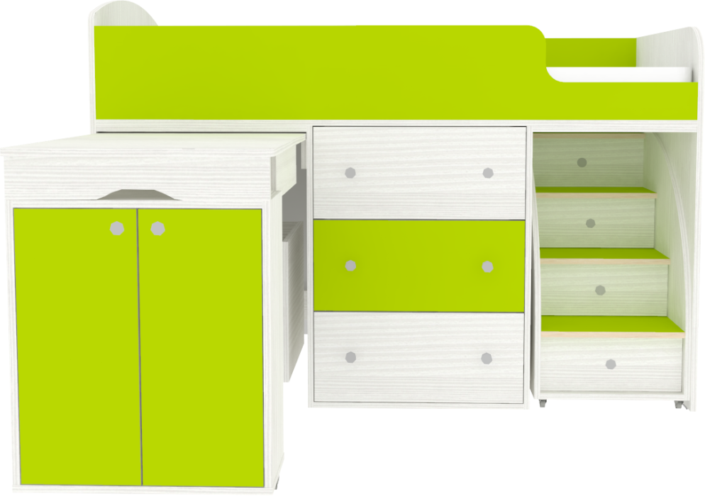 Кровать чердак Малыш, Белое Дерево (Лайм)