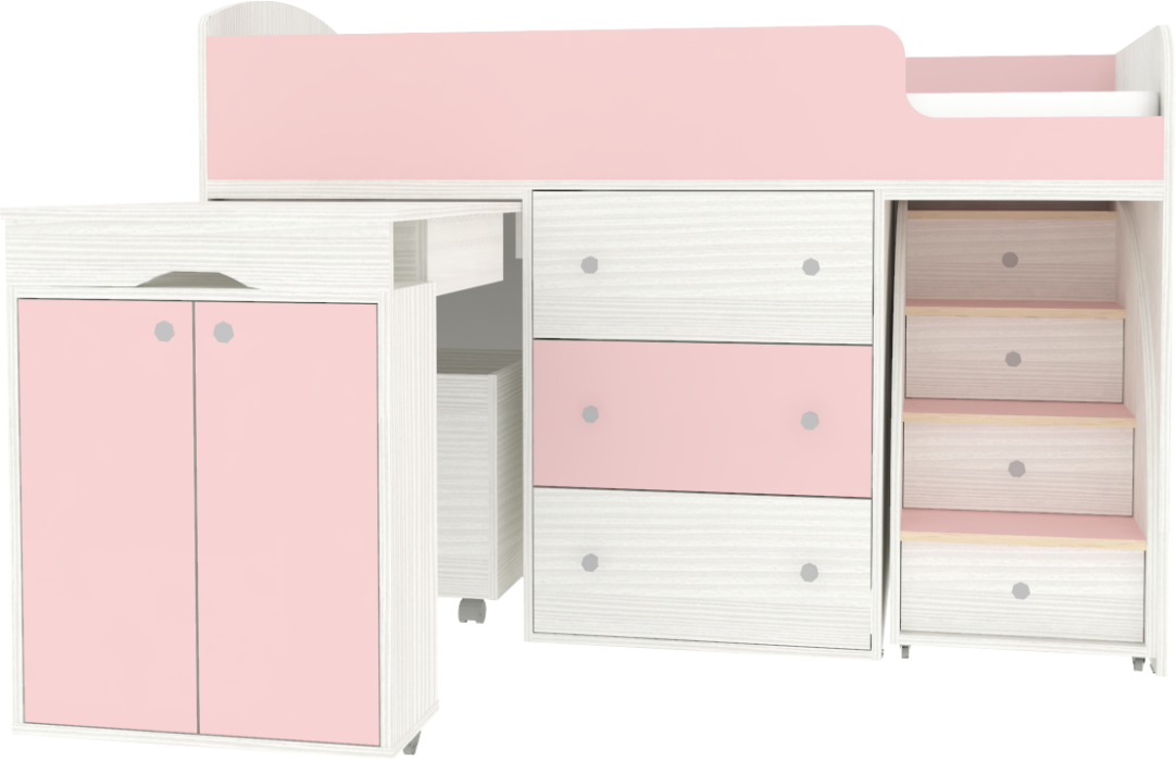 Кровать чердак Малыш, Белое Дерево (Розовый)
