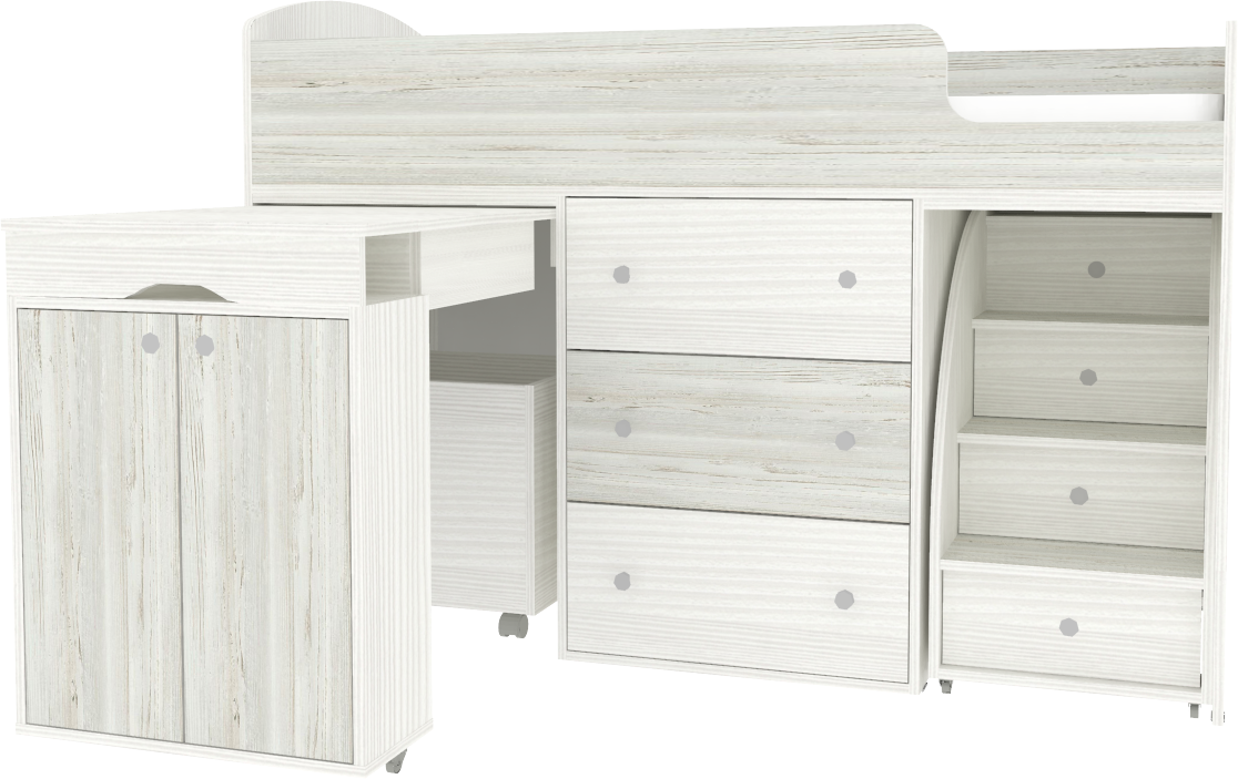 - Экономичность – сокращение времени по подбору и поиску, а так же средств на необходимом наборе мебели для ребенка (приобретая поотдельности кроватку, комод для вещей, столик для занятий, полки для пособий и сундук для многочисленных игрушек, то весь набор обойдется существенно дороже.). Фабрика проявляет заботу о здоровье детей, и поэтому использует в производстве только экологически чистые материалы. Экологичная мебель не вызывает аллергии и не вредит здоровью. Кроме того, мебель от этого производителя спроектирована с учетом, что ей будут пользоваться дети, поэтому при ее создании были приняты все меры для уменьшения ее травмоопасности. У мебели для малышей нет острых углов, о которые ребенок может больно удариться. Кровати-чердаки обязательно оборудованы ограничителями, которые не дадут ребенку случайно упасть с кровати. разумеется, особое внимание компания уделяет прочности и надежности производимой мебели. Эта компактная и многофункциональная детская кровать станет великолепным решением для небольшой детской комнаты. Матрас для кровати вы можете приобрести отдельно в разделе детских матрасов. Так же мы предлагаем ниже в разделе Аксессуары наиболее оптимальные варианты для данной кровати.