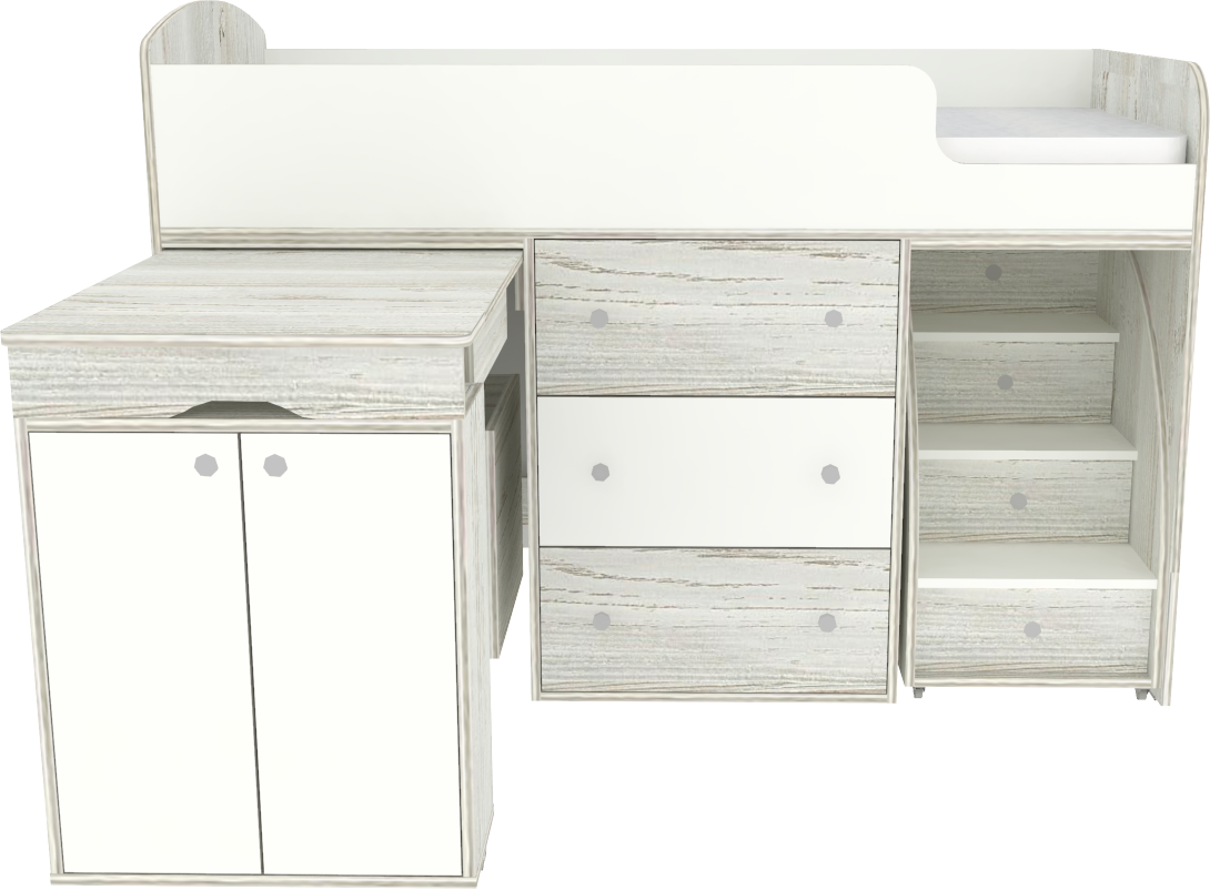 - Экономичность – сокращение времени по подбору и поиску, а так же средств на необходимом наборе мебели для ребенка (приобретая поотдельности кроватку, комод для вещей, столик для занятий, полки для пособий и сундук для многочисленных игрушек, то весь набор обойдется существенно дороже.) Фабрика проявляет заботу о здоровье детей, и поэтому использует в производстве только экологически чистые материалы. Экологичная мебель не вызывает аллергии и не вредит здоровью. Кроме того, мебель от этого производителя спроектирована с учетом, что ей будут пользоваться дети, поэтому при ее создании были приняты все меры для уменьшения ее травмоопасности. У мебели для малышей нет острых углов, о которые ребенок может больно удариться. Кровати-чердаки обязательно оборудованы ограничителями, которые не дадут ребенку случайно упасть с кровати. разумеется, особое внимание компания уделяет прочности и надежности производимой мебели. Эта компактная и многофункциональная детская кровать станет великолепным решением для небольшой детской комнаты. Матрас для кровати вы можете приобрести отдельно в разделе детских матрасов. Так же мы предлагаем ниже в разделе Аксессуары наиболее оптимальные варианты для данной кровати.