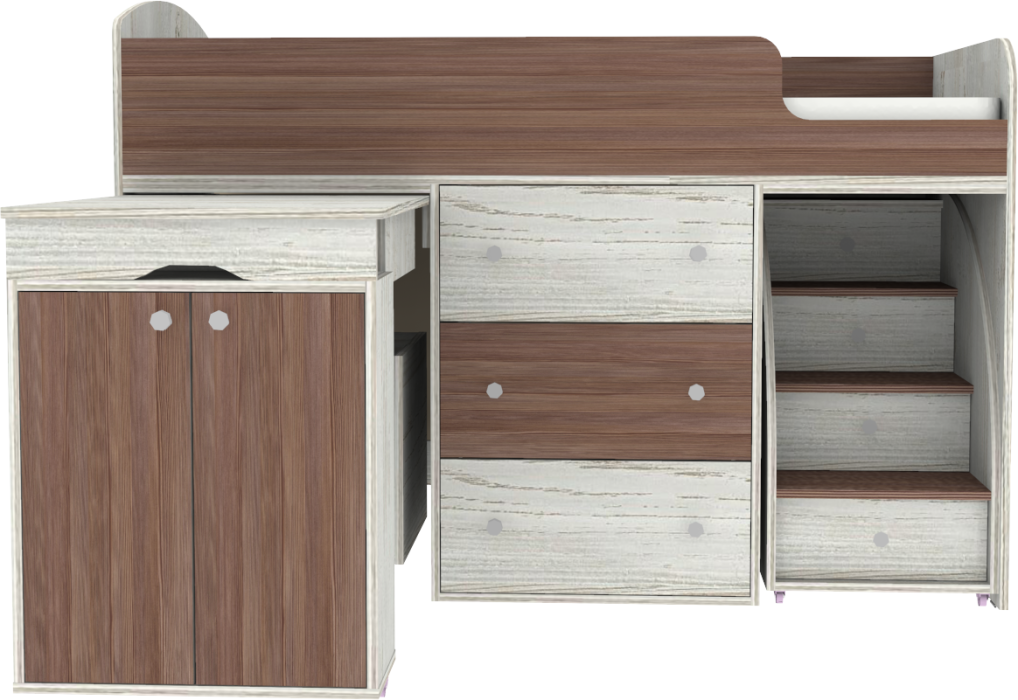 - Экономичность – сокращение времени по подбору и поиску, а так же средств на необходимом наборе мебели для ребенка (приобретая поотдельности кроватку, комод для вещей, столик для занятий, полки для пособий и сундук для многочисленных игрушек, то весь набор обойдется существенно дороже.) Фабрика проявляет заботу о здоровье детей, и поэтому использует в производстве только экологически чистые материалы. Экологичная мебель не вызывает аллергии и не вредит здоровью. Кроме того, мебель от этого производителя спроектирована с учетом, что ей будут пользоваться дети, поэтому при ее создании были приняты все меры для уменьшения ее травмоопасности. У мебели для малышей нет острых углов, о которые ребенок может больно удариться. Кровати-чердаки обязательно оборудованы ограничителями, которые не дадут ребенку случайно упасть с кровати. разумеется, особое внимание компания уделяет прочности и надежности производимой мебели. Эта компактная и многофункциональная детская кровать станет великолепным решением для небольшой детской комнаты. Матрас для кровати вы можете приобрести отдельно в разделе детских матрасов. Так же мы предлагаем ниже в разделе Аксессуары наиболее оптимальные варианты для данной кровати.