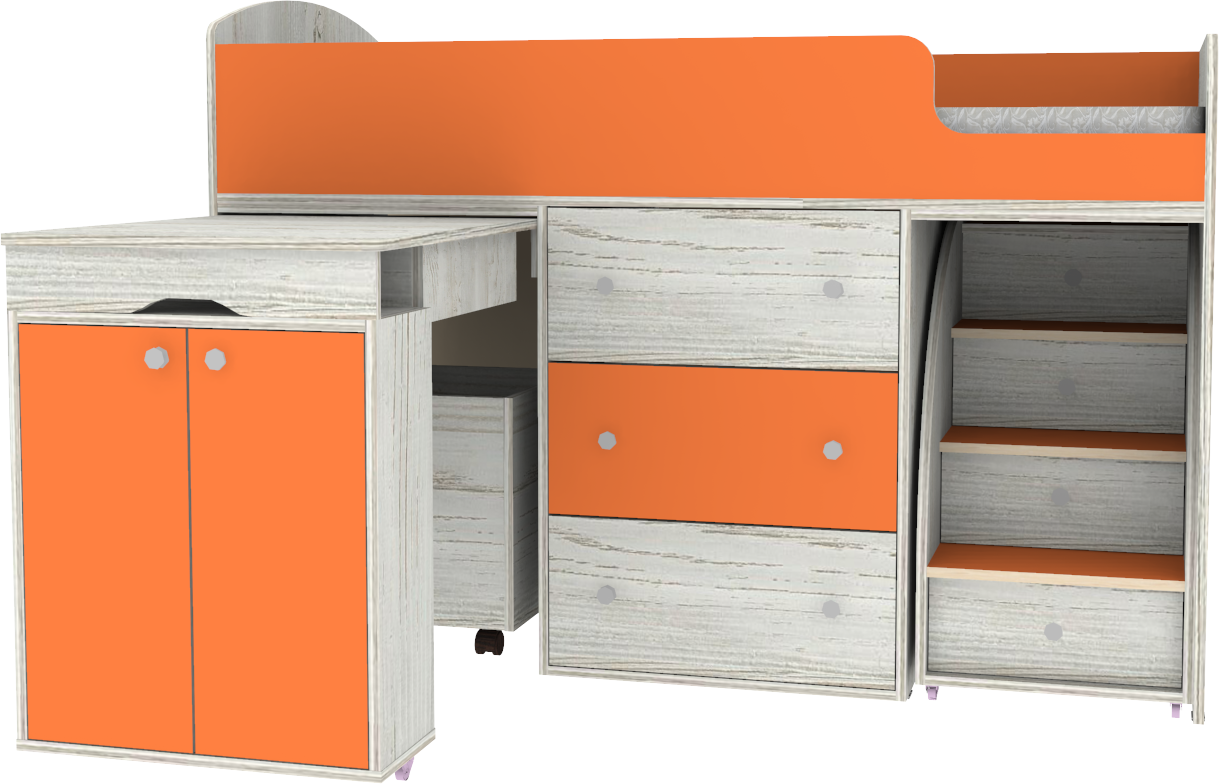 - Экономичность – сокращение времени по подбору и поиску, а так же средств на необходимом наборе мебели для ребенка (приобретая поотдельности кроватку, комод для вещей, столик для занятий, полки для пособий и сундук для многочисленных игрушек, то весь набор обойдется существенно дороже.) Фабрика проявляет заботу о здоровье детей, и поэтому использует в производстве только экологически чистые материалы. Экологичная мебель не вызывает аллергии и не вредит здоровью. Кроме того, мебель от этого производителя спроектирована с учетом, что ей будут пользоваться дети, поэтому при ее создании были приняты все меры для уменьшения ее травмоопасности. У мебели для малышей нет острых углов, о которые ребенок может больно удариться. Кровати-чердаки обязательно оборудованы ограничителями, которые не дадут ребенку случайно упасть с кровати. разумеется, особое внимание компания уделяет прочности и надежности производимой мебели. Эта компактная и многофункциональная детская кровать станет великолепным решением для небольшой детской комнаты. Матрас для кровати вы можете приобрести отдельно в разделе детских матрасов. Так же мы предлагаем ниже в разделе Аксессуары наиболее оптимальные варианты для данной кровати.