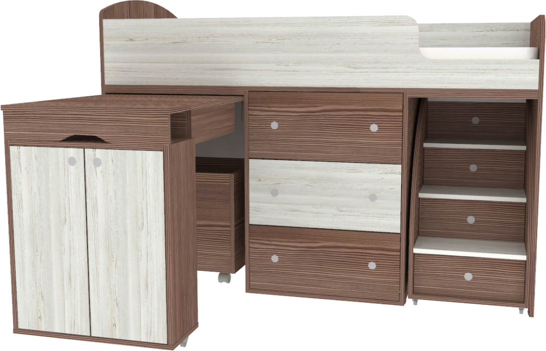 - выдвижной столик с выдвижным ящиком для письменных принадлежностей и торцевым шкафчиком для книжек