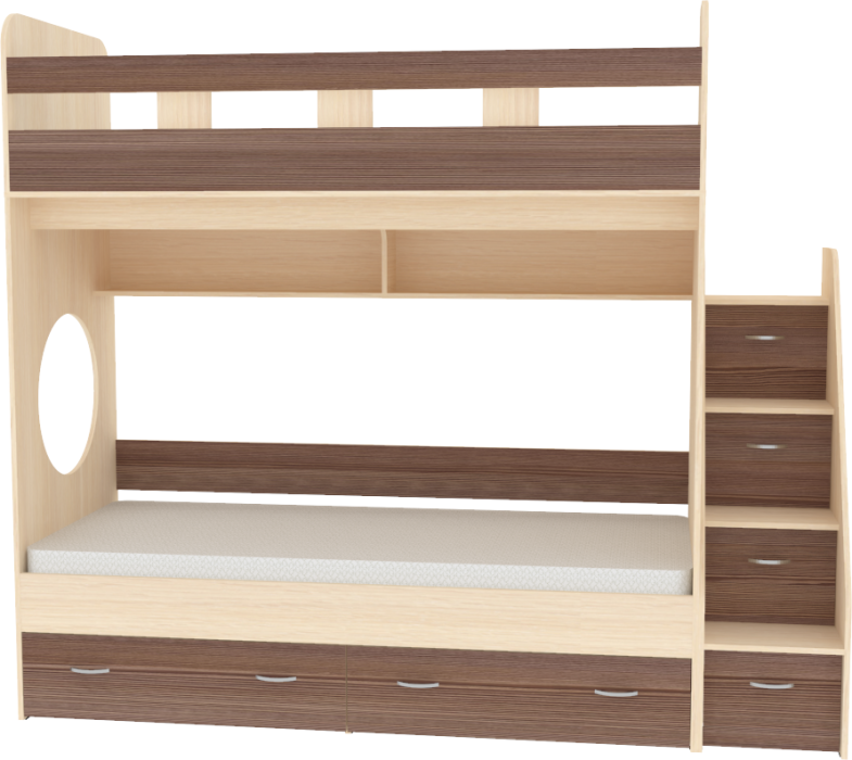 Кровать чердак Юниор 1 решает проблему малого пространства сочетая в себе целый ряд функций: спальное место для двоих, навесная полка для книг и игрушек, вместительные выдвижные ящики под кроватью, а так же приставная лестница расположенная сбоку, обеспечивающая быстрый и безопасный доступ на второй этаж, с безопасными ступенями в виде выдвижных ящиков. Нижний ярус можно использовать как диван. А при добавлении бортика, диванчик превращается в кровать. По многочисленным просьбам добавлен уменьшенный вариант спального места очень популярной кровати Юниор 1 - 80*160 см. Дополнительный бортик для нижнего яруса покупается отдельно!!! Кровать Юниор 1 может комплектоваться вместо ящиков дополнительным спальным местом. Цену уточняйте у операторов. Ступеньки лестницы представляют собой небольшие ящички, в которые можно сложить нижнее белье ребенка, игрушки и иные вещи. Уникальность Юниор 1 заключается в Цене Компактности Безопасности Надёжности Функциональности. Мебель изготовлена из ламинированного ДСП, с использованием кромки АБС, что позволяет продлить срок службы изделия и сохранить внешний вид. Отсутствие острых углов является самым главным критерием травмобезопастности детей. Кровать выполнена из надежной 16мм ламинированной ДСП. Все торцы мебели обрамлены кромкой ABS 1мм. Сборка универсальная, лестница может быть справа и слева. Материал – ЛДСП. Мебель соответствует высоким стандартам качества и безопасности. Вся мебель сертифицирована и выполнена из экологически чистого материала. Двухъярусная кровать «ЮНИОР -1 являясь одновременно яркой, функциональной и универсальной мебелью, займет почтенное место в детской. *Предприятие-изготовитель оставляет за собой право вносить изменения в конструкцию изделия с целью улучшения технологических и экспутационных свойств мебели. Матрас для кровати вы можете приобрести отдельно в разделе детских матрасов. Так же мы предлагаем ниже, в разделе Аксессуары, наиболее оптимальные варианты для данной кровати.