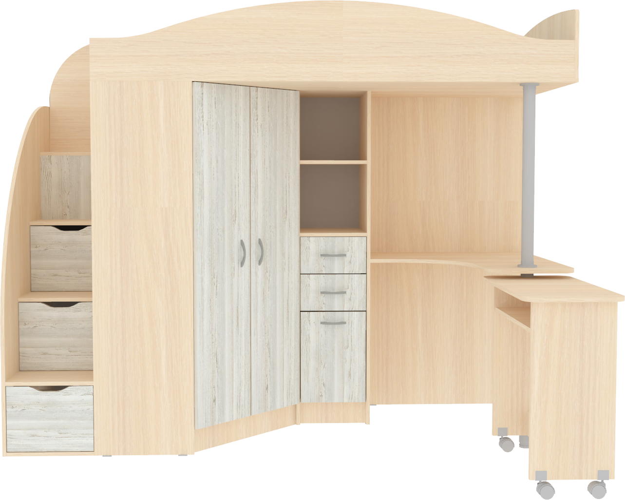 Ваш ребенок по достоинству оценит комфорт, который несет вам кровать-чердак с рабочей зоной Юниор-4.Кровать чердак Юниор-4 - это удобная и компактная мини детская комната для Вашего ребенка со спальным местом наверху и рабочей зоной внизу. Матрас для кровати вы можете приобрести отдельно в разделе детских матрасов. Так же мы предлагаем ниже в разделе Аксессуары наиболее оптимальные варианты для данной кровати.