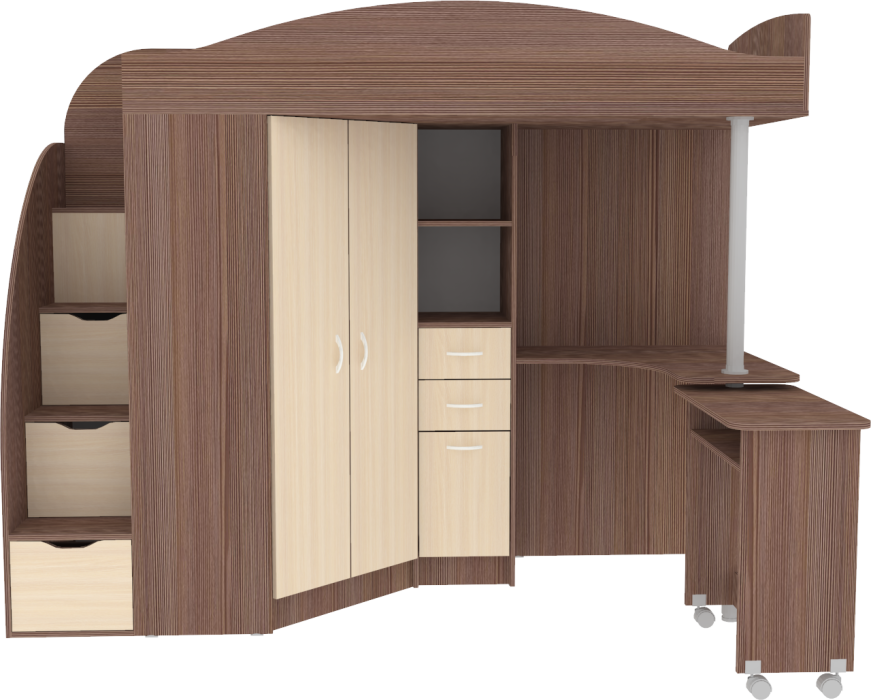 Ваш ребенок по достоинству оценит комфорт, который несет вам кровать-чердак с рабочей зоной Юниор-4.Кровать чердак Юниор-4 - это удобная и компактная мини детская комната для Вашего ребенка со спальным местом наверху и рабочей зоной внизу. Матрас для кровати вы можете приобрести отдельно в разделе детских матрасов. Так же мы предлагаем ниже в разделе Аксессуары наиболее оптимальные варианты для данной кровати.