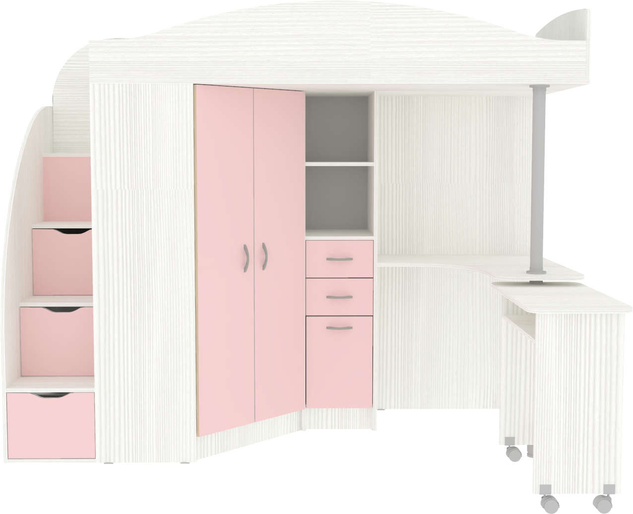 Кровать чердак Юниор 4, Белое Дерево (Розовый)