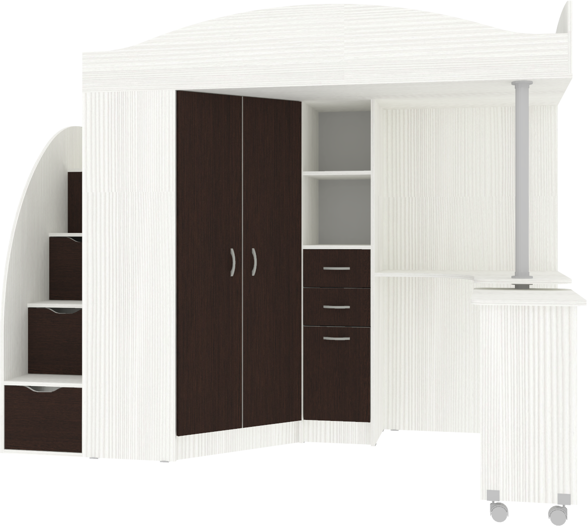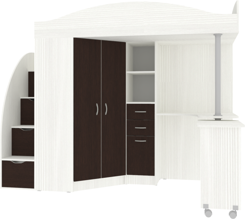 Ваш ребенок по достоинству оценит комфорт, который несет вам кровать-чердак с рабочей зоной Юниор-4.Кровать чердак Юниор-4 - это удобная и компактная мини детская комната для Вашего ребенка со спальным местом наверху и рабочей зоной внизу. Матрас для кровати вы можете приобрести отдельно в разделе детских матрасов. Так же мы предлагаем ниже в разделе Аксессуары наиболее оптимальные варианты для данной кровати.
