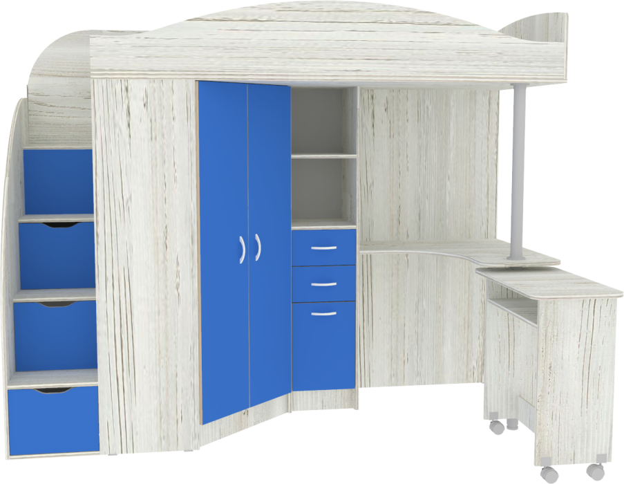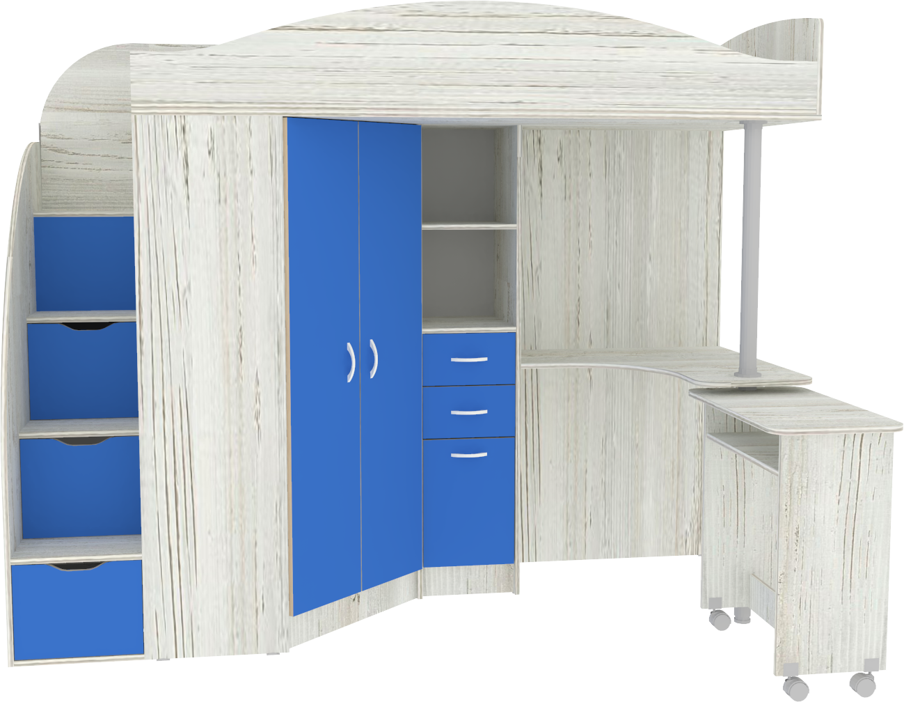 Ваш ребенок по достоинству оценит комфорт, который несет вам кровать-чердак с рабочей зоной Юниор-4.Кровать чердак Юниор-4 - это удобная и компактная мини детская комната для Вашего ребенка со спальным местом наверху и рабочей зоной внизу. Матрас для кровати вы можете приобрести отдельно в разделе детских матрасов. Так же мы предлагаем ниже в разделе Аксессуары наиболее оптимальные варианты для данной кровати.