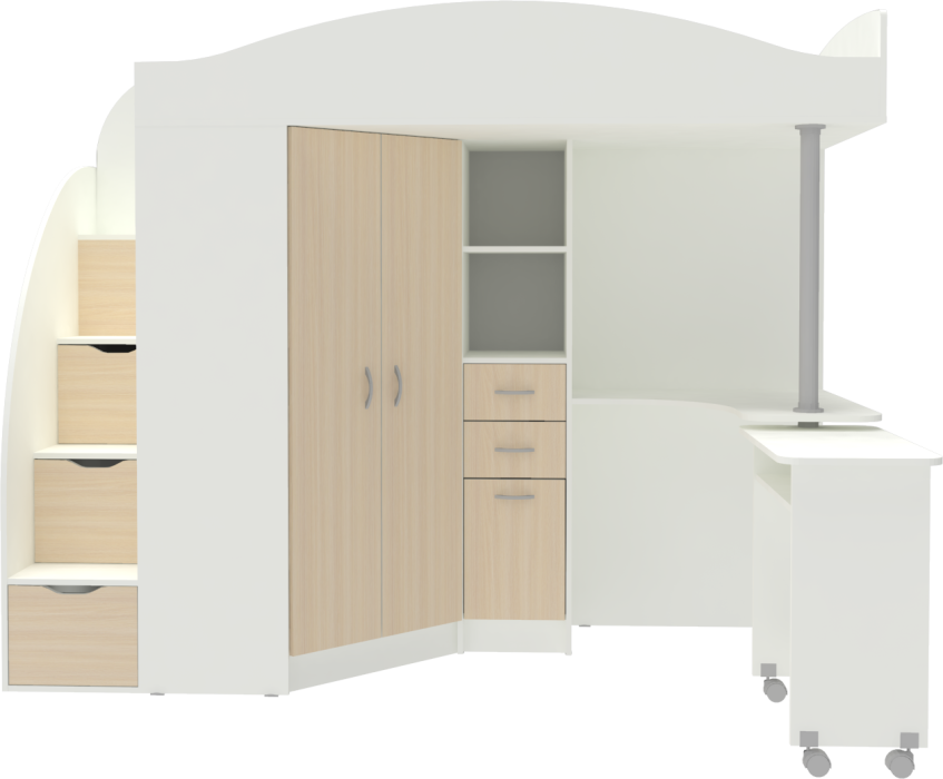 Ваш ребенок по достоинству оценит комфорт, который несет вам кровать-чердак с рабочей зоной Юниор-4.Кровать чердак Юниор-4 - это удобная и компактная мини детская комната для Вашего ребенка со спальным местом наверху и рабочей зоной внизу. Матрас для кровати вы можете приобрести отдельно в разделе детских матрасов. Так же мы предлагаем ниже в разделе Аксессуары наиболее оптимальные варианты для данной кровати.
