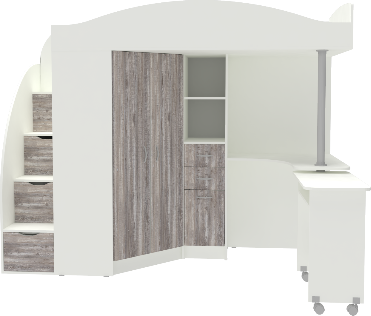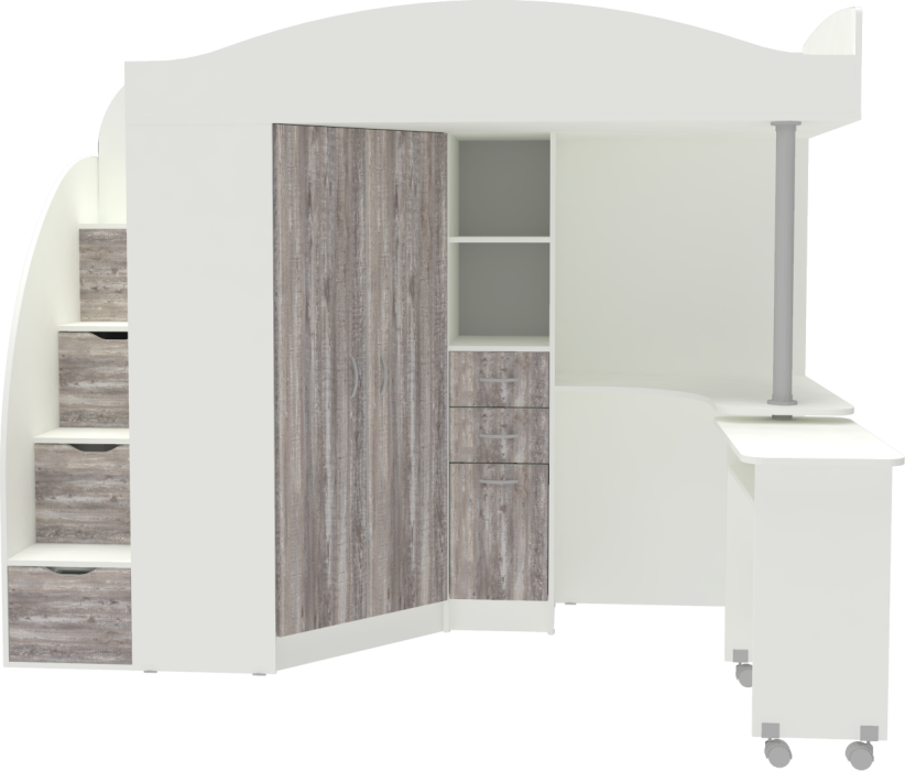 Кровать чердак Юниор 4, Белый (Бетон серый)