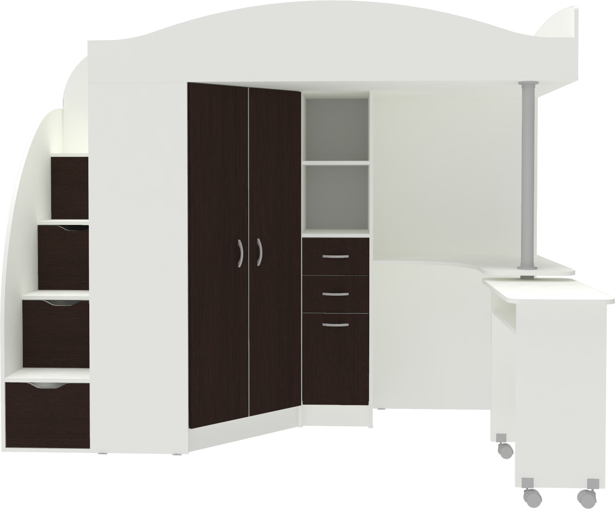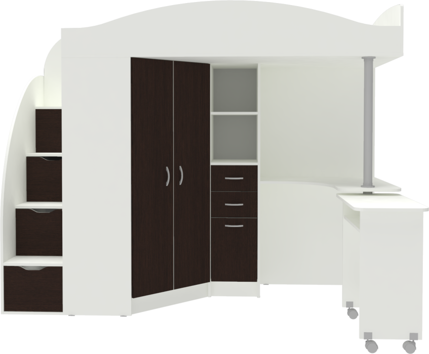 Ваш ребенок по достоинству оценит комфорт, который несет вам кровать-чердак с рабочей зоной Юниор-4.Кровать чердак Юниор-4 - это удобная и компактная мини детская комната для Вашего ребенка со спальным местом наверху и рабочей зоной внизу. Матрас для кровати вы можете приобрести отдельно в разделе детских матрасов. Так же мы предлагаем ниже в разделе Аксессуары наиболее оптимальные варианты для данной кровати.