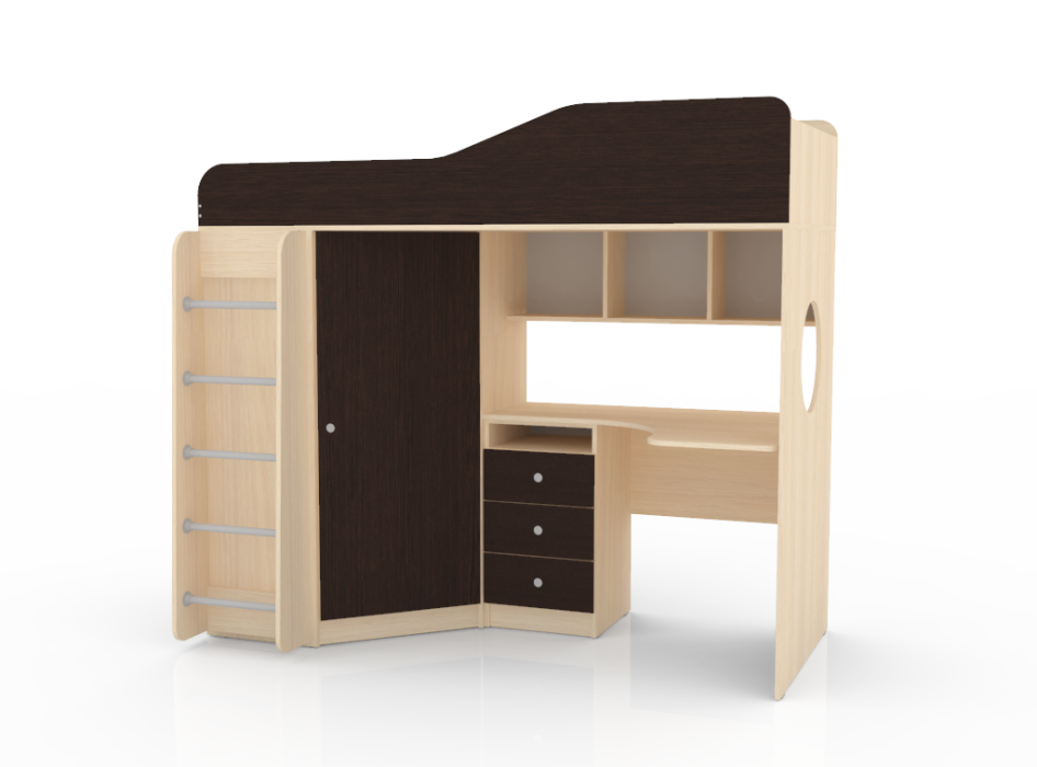 - Рекомендованная высота матраса: 50-150 мм Материалы, используемые при изготовлении: Ламинированная ДСП, края лестницы, борта кровати декорированы противоударной кромкой ПВХ. На цветных фасадах: цвет кромки - бежевый.