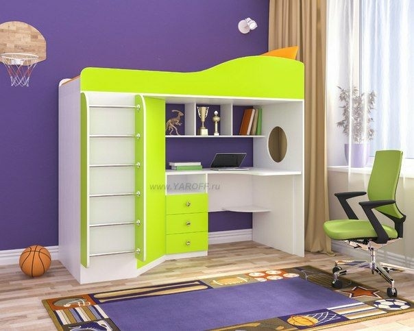 - Рекомендованная высота матраса: 50-150 мм Материалы, используемые при изготовлении: Ламинированная ДСП, края лестницы, борта кровати декорированы противоударной кромкой ПВХ. На цветных фасадах: цвет кромки - бежевый.