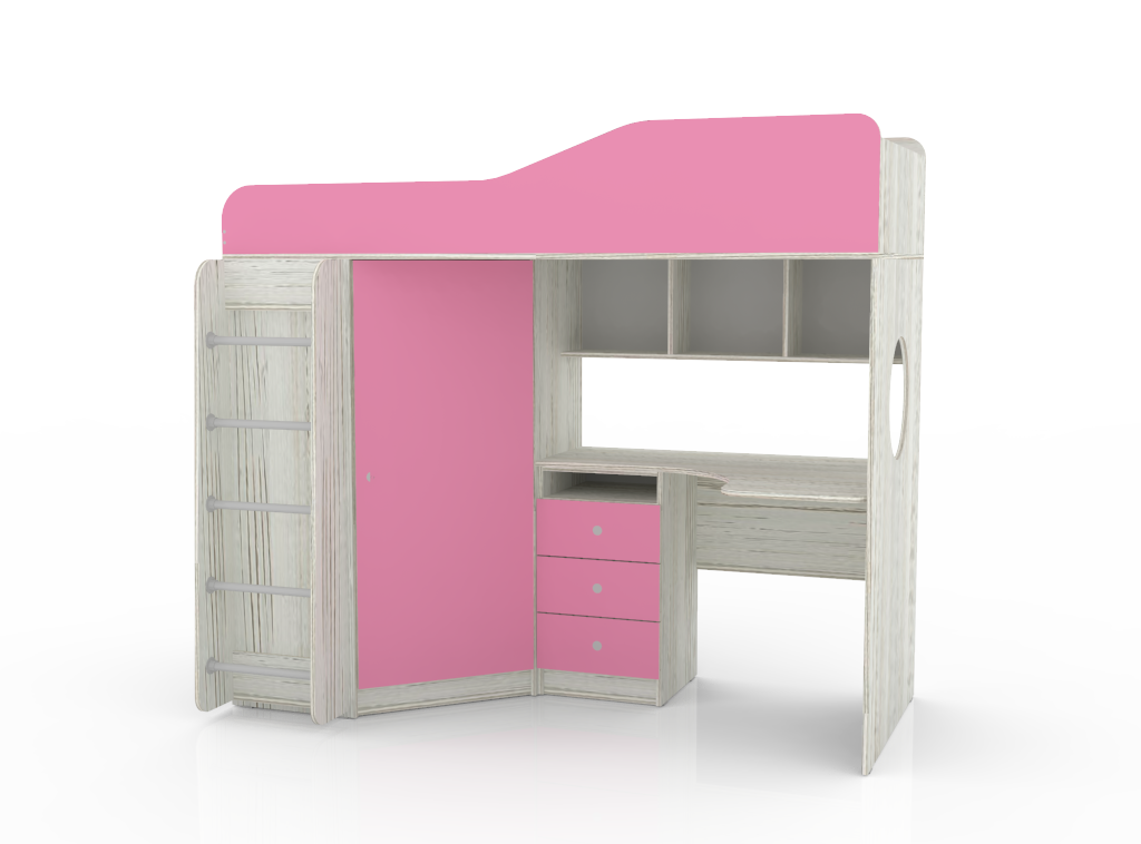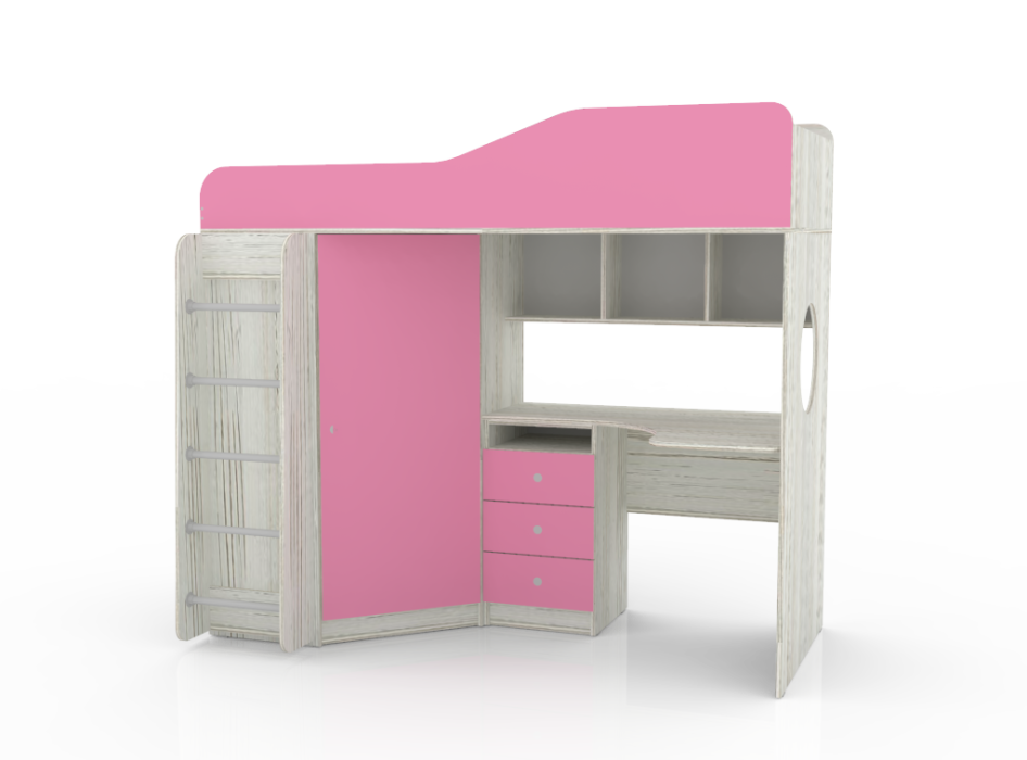 Кровать чердак Кадет 1 с металлической лестницей, Винтерберг (Розовый)