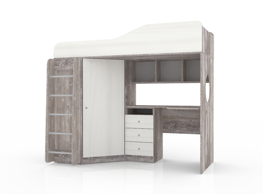 Отзывы о Столплит Кровать чердак Кадет 1 с металлической лестницей, Бетон Белое дерево