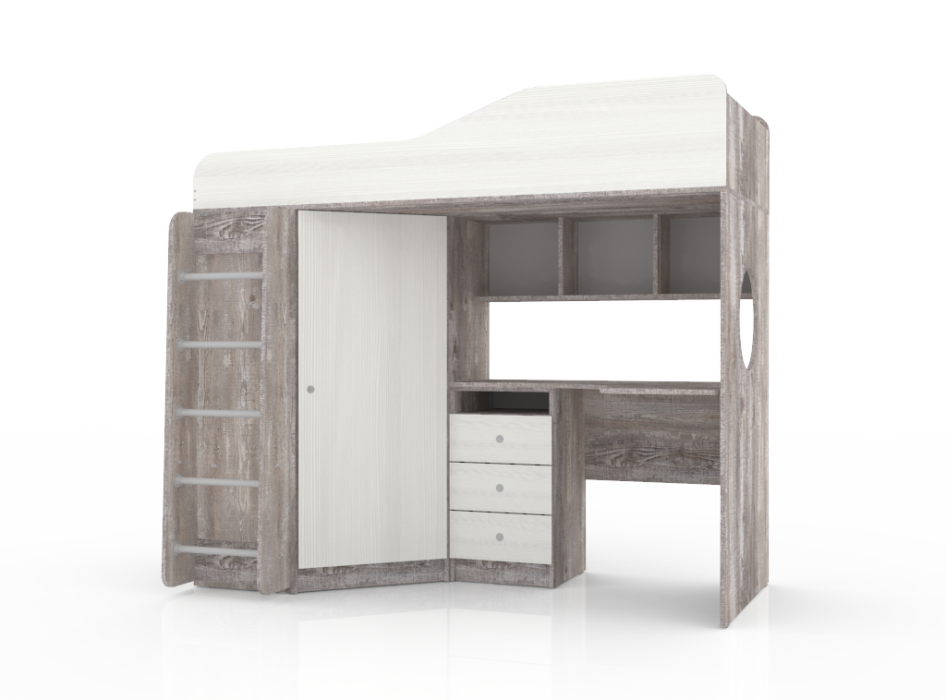 Кровать чердак Кадет 1 с металлической лестницей, Бетон (Белое дерево)