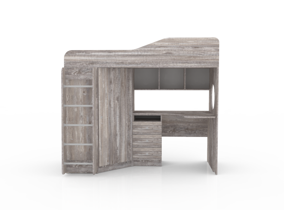 Кровать чердак Кадет 1 с металлической лестницей, Бетон (Бетон серый)