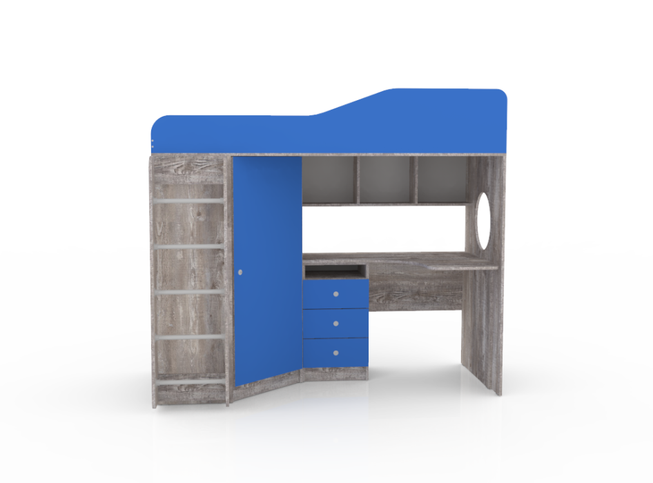 Кровать чердак Кадет 1 с металлической лестницей, Бетон (Синий)