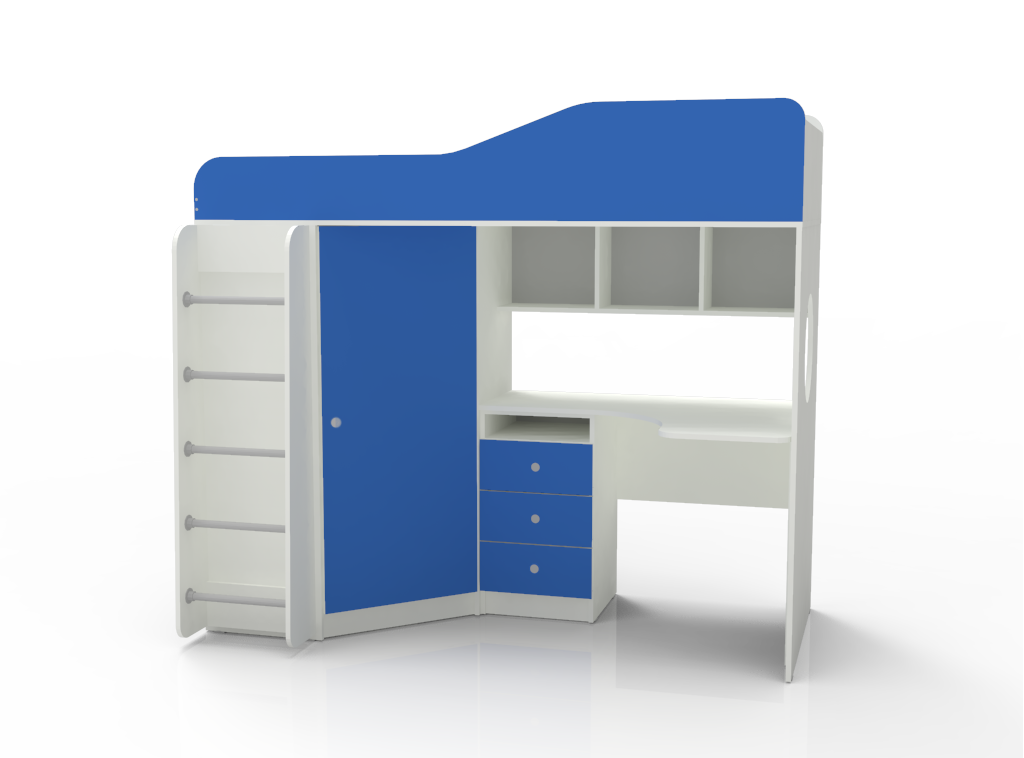 Кровать чердак Кадет 1 с металлической лестницей, Белый (Синий)