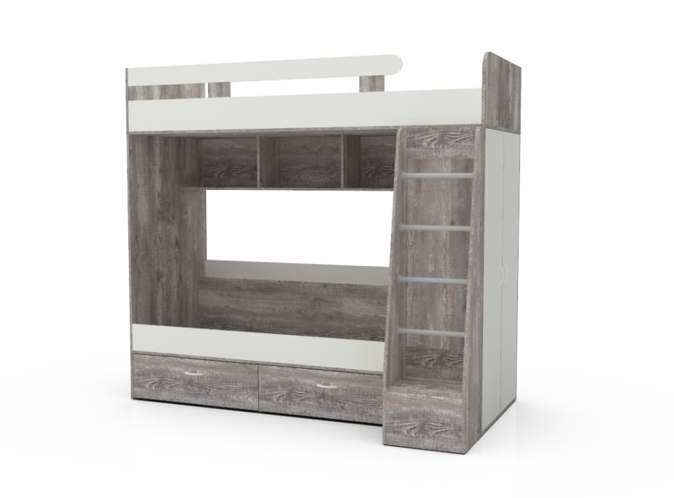 Двухъярусная кровать Юниор 6, Бетон (Белый)
